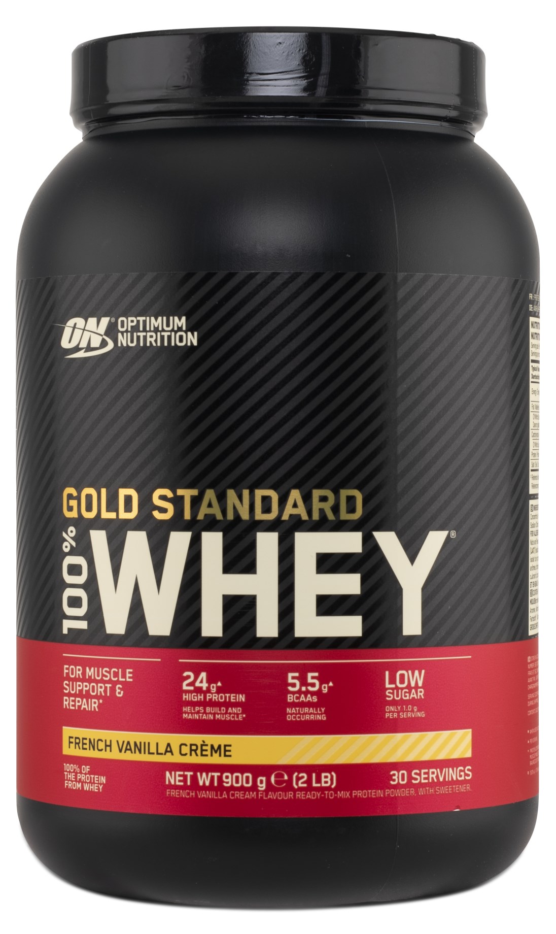 Vassleproteinkoncentrat är en av de tre huvudsakliga typerna av vassleproteinpulver som finns och detta innehåller en viss del fett och laktos. Vassleproteinisolatet i sin tur har bearbetats och filtrerats för att få bort nästan allt fett och laktos och detta gör att andelen protein är betydligt högre. Det finaste delen av vasslen är hydrolysat där aminosyrorna brutits ner till peptider för att proteinet lättare skall kunna tas upp av kroppen. Denna process är dyrare och mer tidskrävande men ger ett extra fint protein. Alla dessa finns med i 100% Whey Gold Standard för att du ska få ut det bästa av det bästa och hela 24 gram protein per portion.