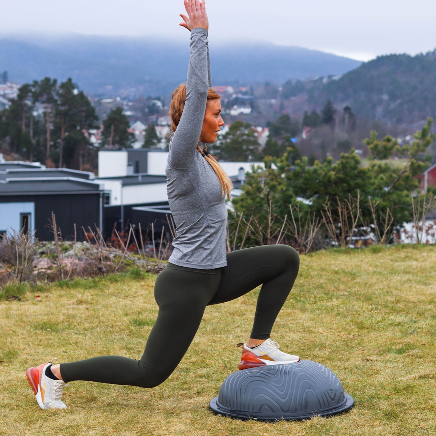 Den mjuka ovansidan ger instabilitet till steget och bra balansträning för små muskler i fotleder, knän eller motsvarande aktiverade leder och används som en balansboll. Prova att sitta ned och utföra situps, stå på den och gör knäböj eller använd som underlag för händerna vid plankan-övningar eller armhävningar. Vänd sedan på bosubollen för en helt ny uppsjö av övningar på balansplatta där balansen utmanas ordentligt.