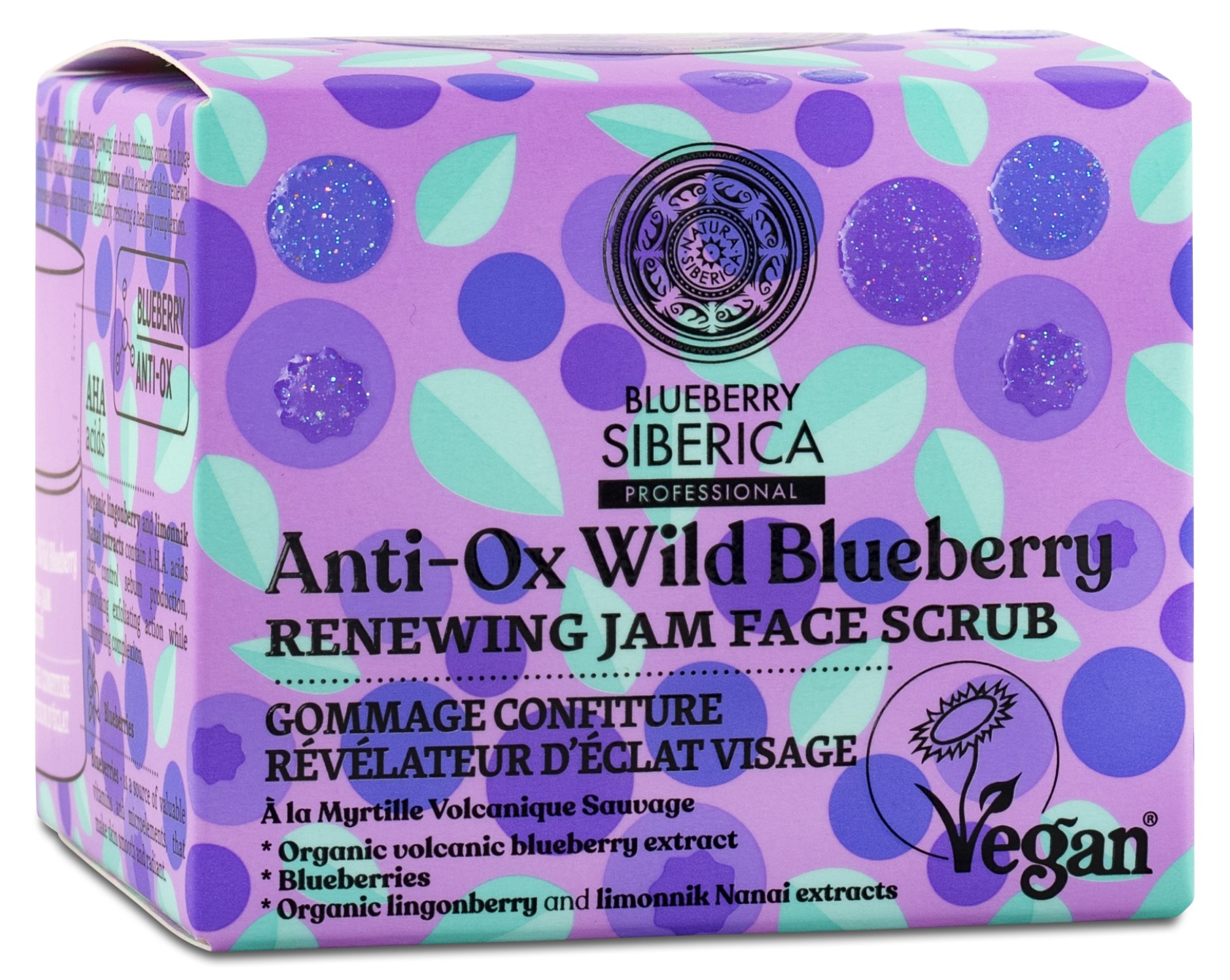 Anti-OX Wild Blueberry Renewing Jam Face Scrub från Natura Siberica är en härlig exfolierande ansiktspeeling med extrakt från vilda blåbär. Peelingen förnyar huden, jämnar ut hudtonen och ger lyster. Den rengör även porerna effektivt och lämnar en sammetslen känsla. 100 % vegansk formula. Kombinera gärna med Anti-Ox Wild Blueberry Super Hydrating Eye Patch-effect Mask.