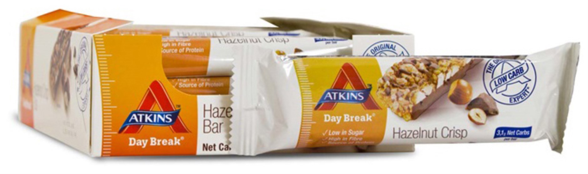 När du behöver ett litet mellanmål och vill undvika socker, är Day Break Bar ett utmärkt alternativ. Den är liten och lagom att äta som mellanmål, lätt att ta med sig och rik på protein. Dessutom är den helt fri från tillsatt socker! Välj bland smakrik choklad och krispiga nötter och njut med gott samvete. Day Break Bar passar speciellt bra för dig som äter enligt Atkins, och passar under alla dietens faser.