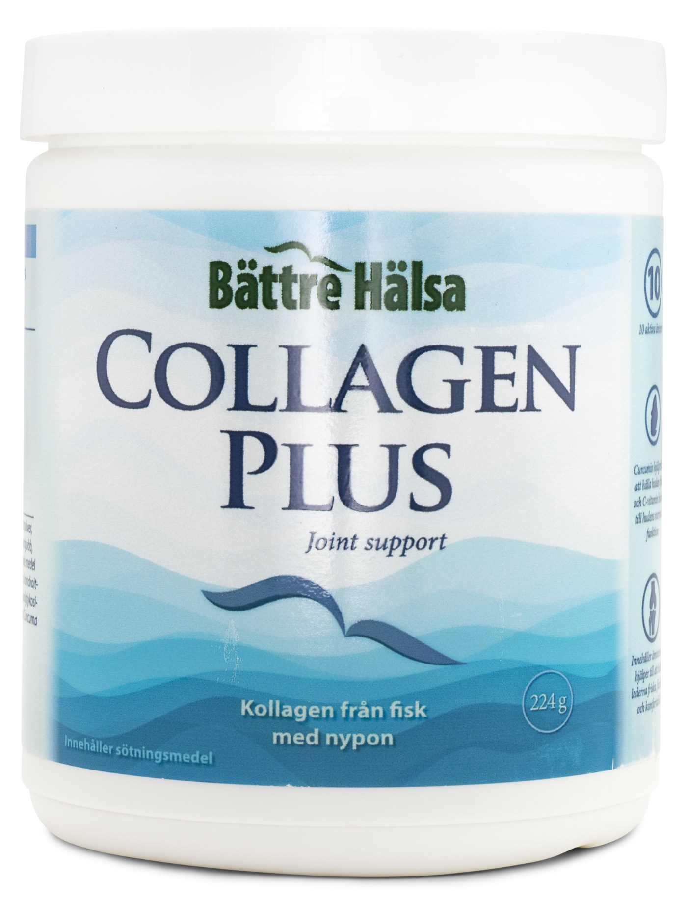 Kollagen har rönt stor uppmärksamhet som kosttillskott för leder, brosk och hud. Det beror på att kollagen finns naturligt i all bindväv, med stor mängd i både leder, ligament och i huden. Bättre Hälsa Collagen Plus är ett fint kollagenpulver, förstärkt med flera utvalda verksamma ämnen som ger en bra kombination. Bland annat ingår MSM (svavel), nypon, hyaluronsyra och kondroitin - samtliga omtalade när det kommer till ledtillskott. Kollagenet i Collagen Plus kommer från fisk från hållbara bestånd i Nordamerika.