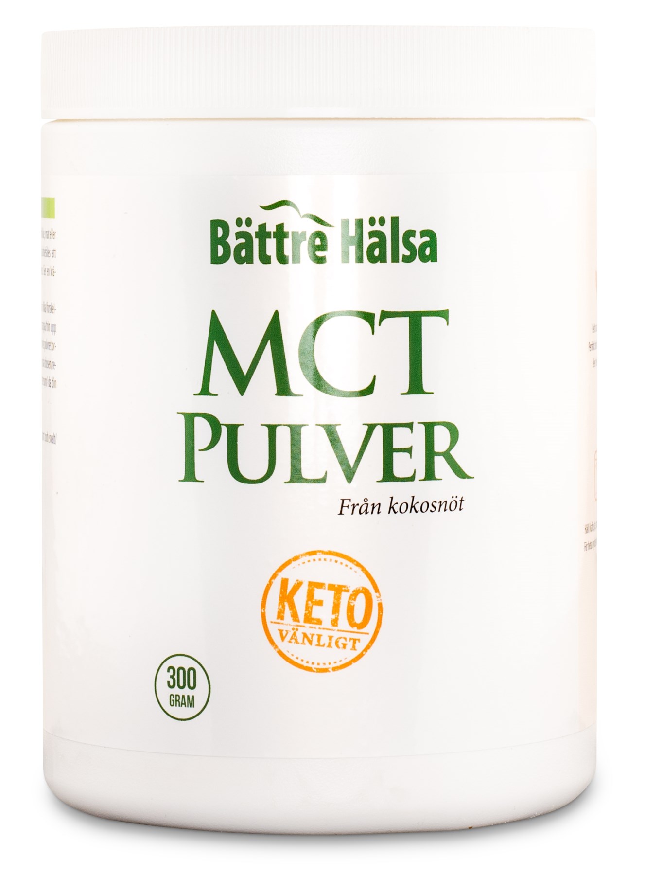 Bättre Hälsa MCT Pulver är ett fettrikt, energigivande pulver som framställs från kokosolja. MCT är ett populärt alternativ till mjölk i kaffet eftersom det ger en krämig smak samtidigt som du minskar sockerintaget. Det går även bra att blanda ut MCT i vatten, smoothies och andra drycker utan att det bildas ett fettlager eftersom pulvret lätt löser upp sig. MCT ger en boost av energi från fett istället för från socker och passar därför utmärkt för dig som går på diet och är noga med vad du äter och dricker.