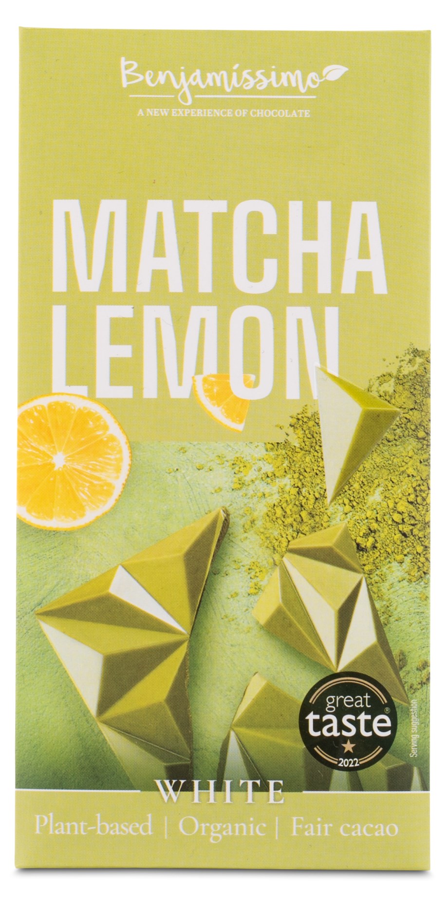 Matcha & Citron - Denna gröna matcha-choklad från Benjamissimo med citroninslag erbjuder en behaglig smakupplevelse och har vunnit Great Taste Award!