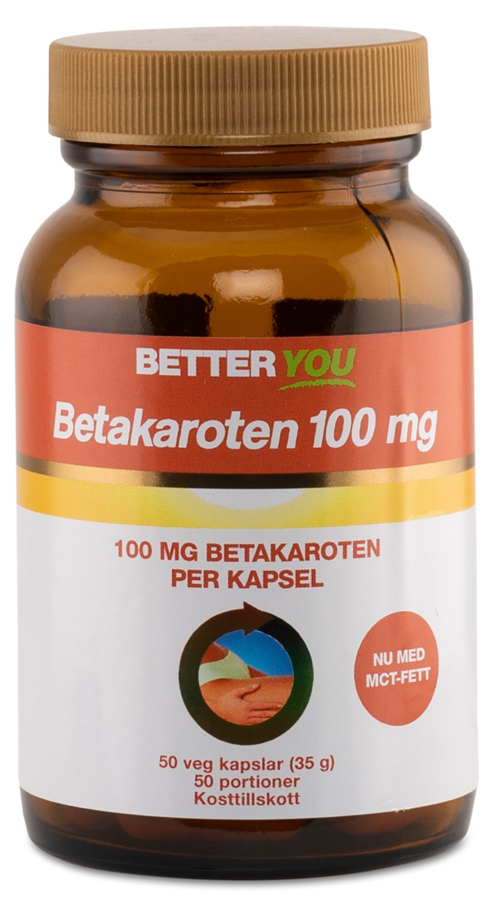 Better You Betakaroten 100 mg innehåller rikliga mängder av betakaroten, ett antioxidantliknande ämne som fungerar som förstadium till vitamin A. Betakaroten har gjort sig känd som ett sätt att förbereda huden för solsäsongen genom att det bidrar till hudcellernas bildande av melanin. Melanin fungerar sedan skyddande när huden exponeras för solljus. Betakaroten kan dessutom bidra till att förbättra den härligt solbruna nyansen på huden när du solar. För att få god effekt av betakaroten bör du börja inta kapslarna 6-10 veckor innan du planerar att sola. Better You Betakaroten 100 mg innehåller naturligt betakaroten från svampen Blakeslea trispora som kapslats in i vegetabiliska kapslar. MCT-fett är tillsatt för att få ett ännu bättre upptag.