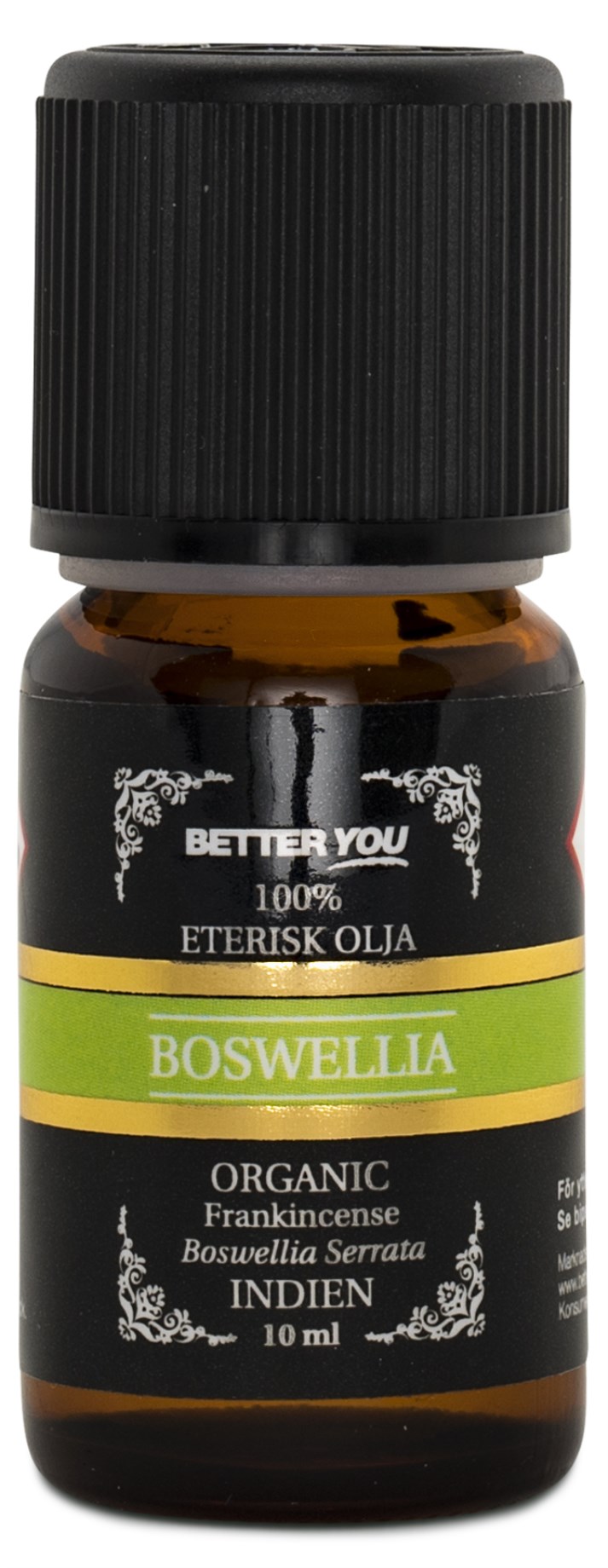 Better You Eterisk Boswelliaolja kommer från den välkända växten Boswellia Serrata, även kallad Boswellia Frankincense. Oljan utvinns genom destillering av bladen och har en varm, kryddig och söt doft med inslag av trä och honung som gör sig bra till bland annat meditation eller aromaterapi. Boswelliaolja har använts inom asiatisk folkmedicin i århundraden men är idag även populär som doftsättare eller för avslappning och meditation tack vare den varma och söta doften.