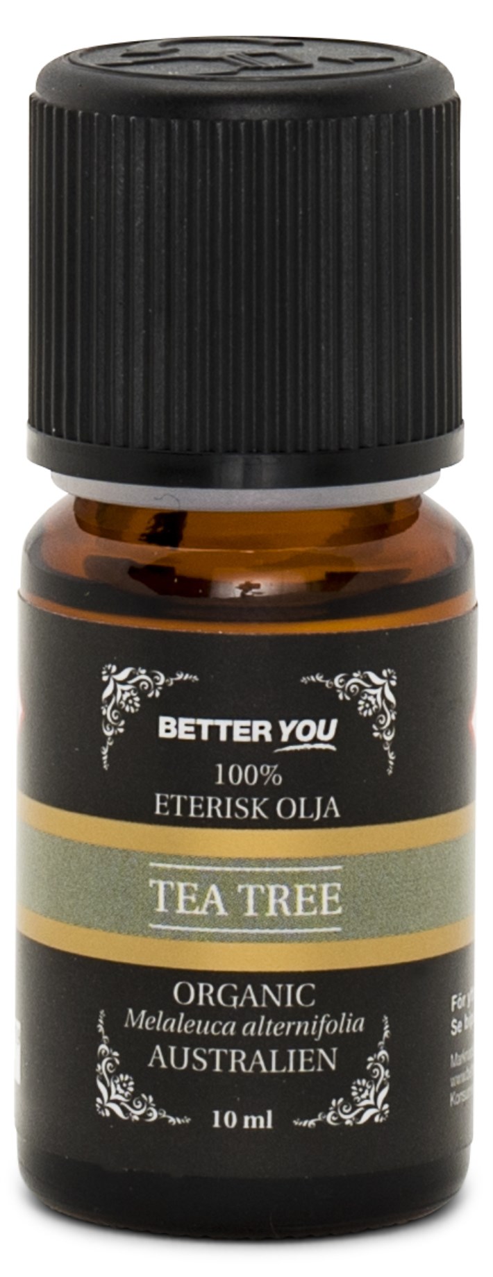 Med Better You Eterisk Tea Tree olja EKO kan du enkelt skapa dina egna hudvårdsprodukter eller använda till aromaterapi i hemmet. Denna eteriska olja är ångdestillerad från bladen på tea tree-busken och innehåller endast 100 % ren eterisk olja. Oljan är mycket koncentrerad och i hudvård ska den därför användas utspädd i andra oljor för att undvika hudirritation, till exempel i en ansiktscreme. Better You Eterisk Tea Tree olja kan passa särskilt bra till oren och aknebenägen hud då den har en bakteriedödande effekt och lämnar en klar och fräsch hy efter sig. Doften är lätt örtig kombinerat med varma och fräscha toner som passar utmärkt ihop med exempelvis kanelolja eller lavendelolja.