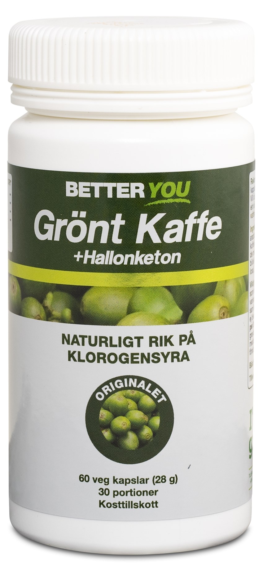 Better You Grönt Kaffe + Hallonketon innehåller en kombination av naturliga extrakt från grönt kaffe samt hallonketoner som är den senaste trenden från Hollywood. Det gröna kaffet är orostat vilket innebär att viktiga näringsämnen bevaras. Produkten är rik på klorogensyra, som annars förstörs vid rostningsprocessen av kaffet. Hallonketoner finns naturligt i hallonen och är det som ger bäret dess unika doft. På senare tid har ämnet blivit uppmärksammat i media.
