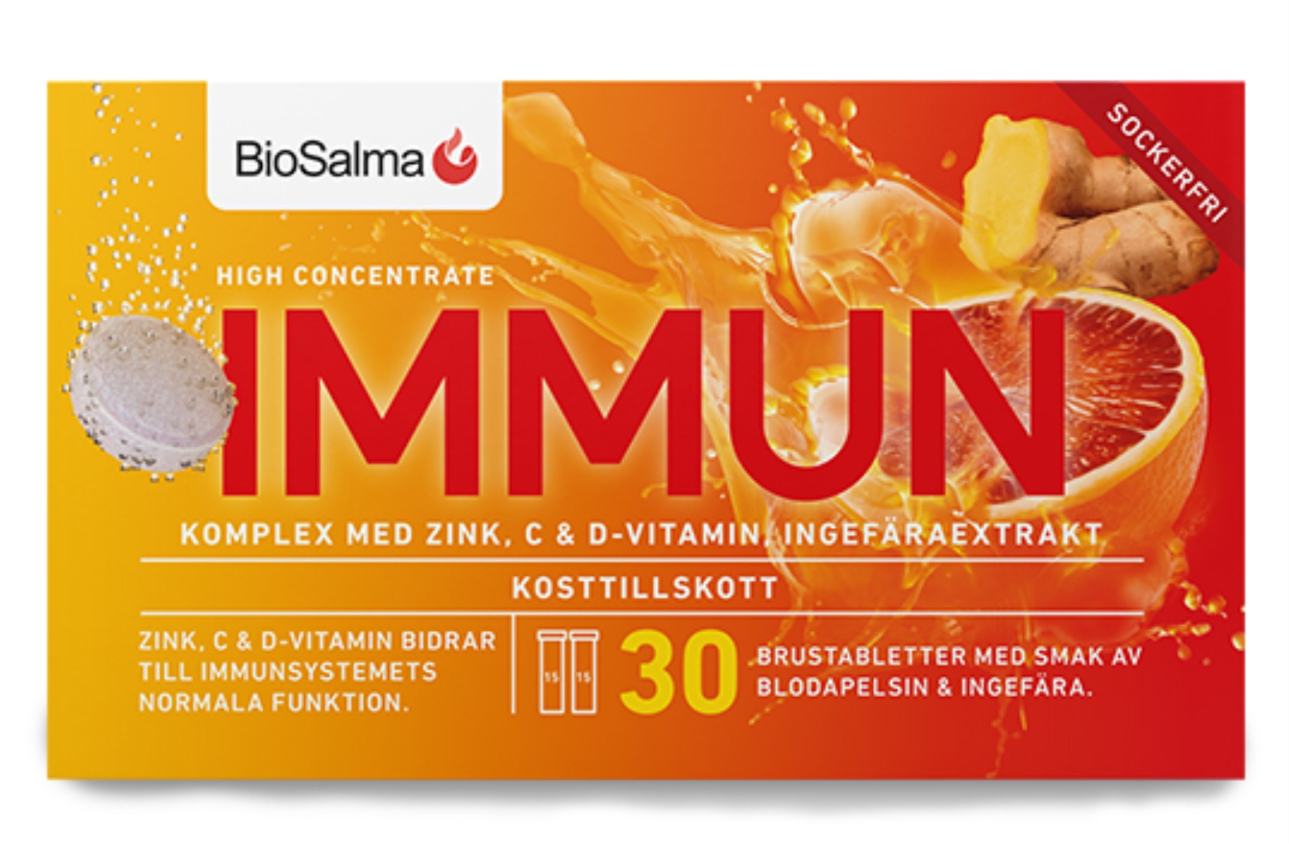 Miniatyrbild BioSalma Immun C+D-vitamin Zink, Blodapelsin & Ingefära, 30 brustabletter