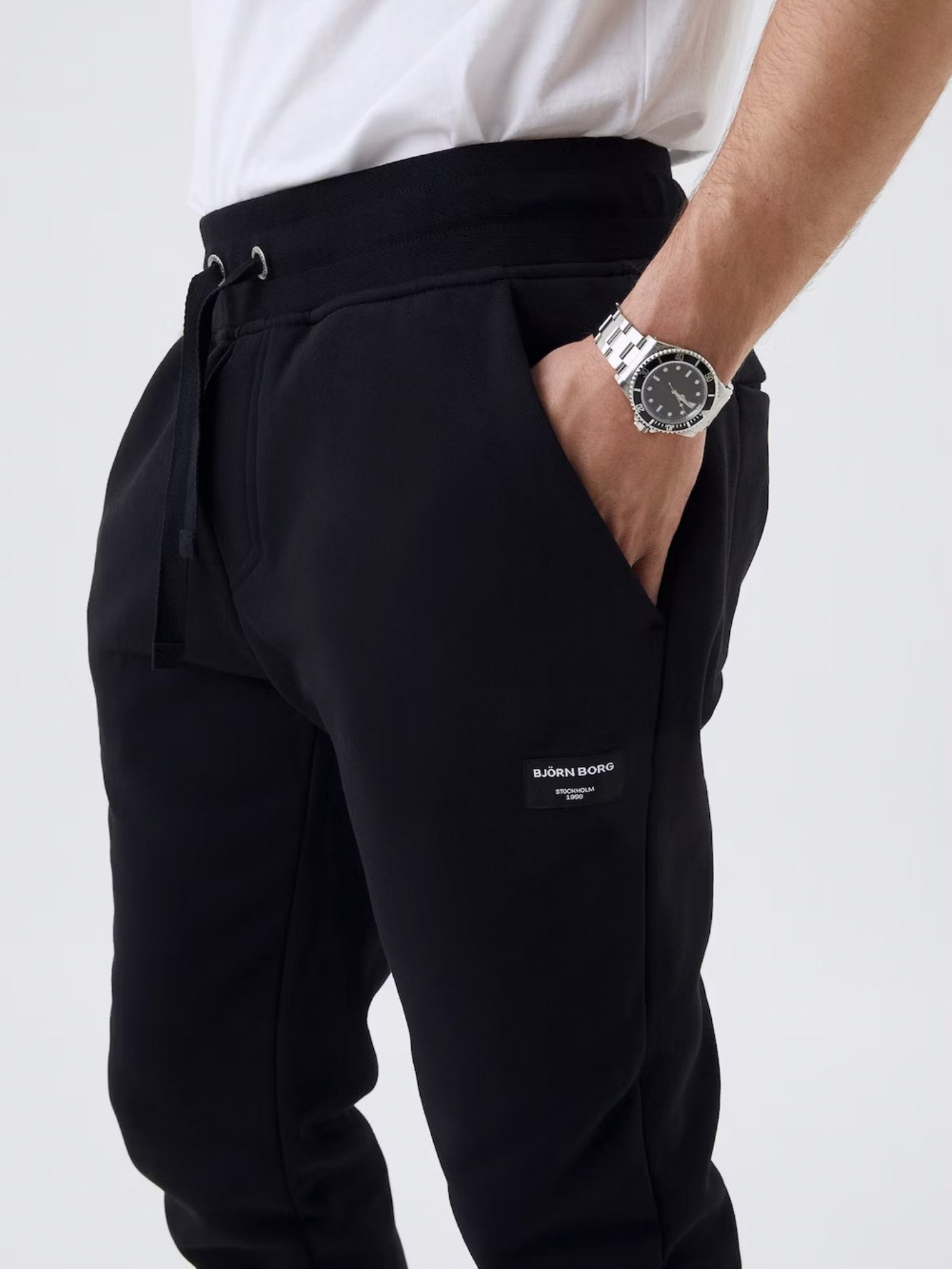 Björn Borg Centre Tapered Pants Man har något smalare ben för en mer dressad look och härlig borstad fleece på insidan. Ribbade muddar i midjan och resår på insidan tillsammans med praktiska sidofickor fram och två fickor bak ger smidig komfort. Midjan går enkelt att justera med dragsnöret i midjan.