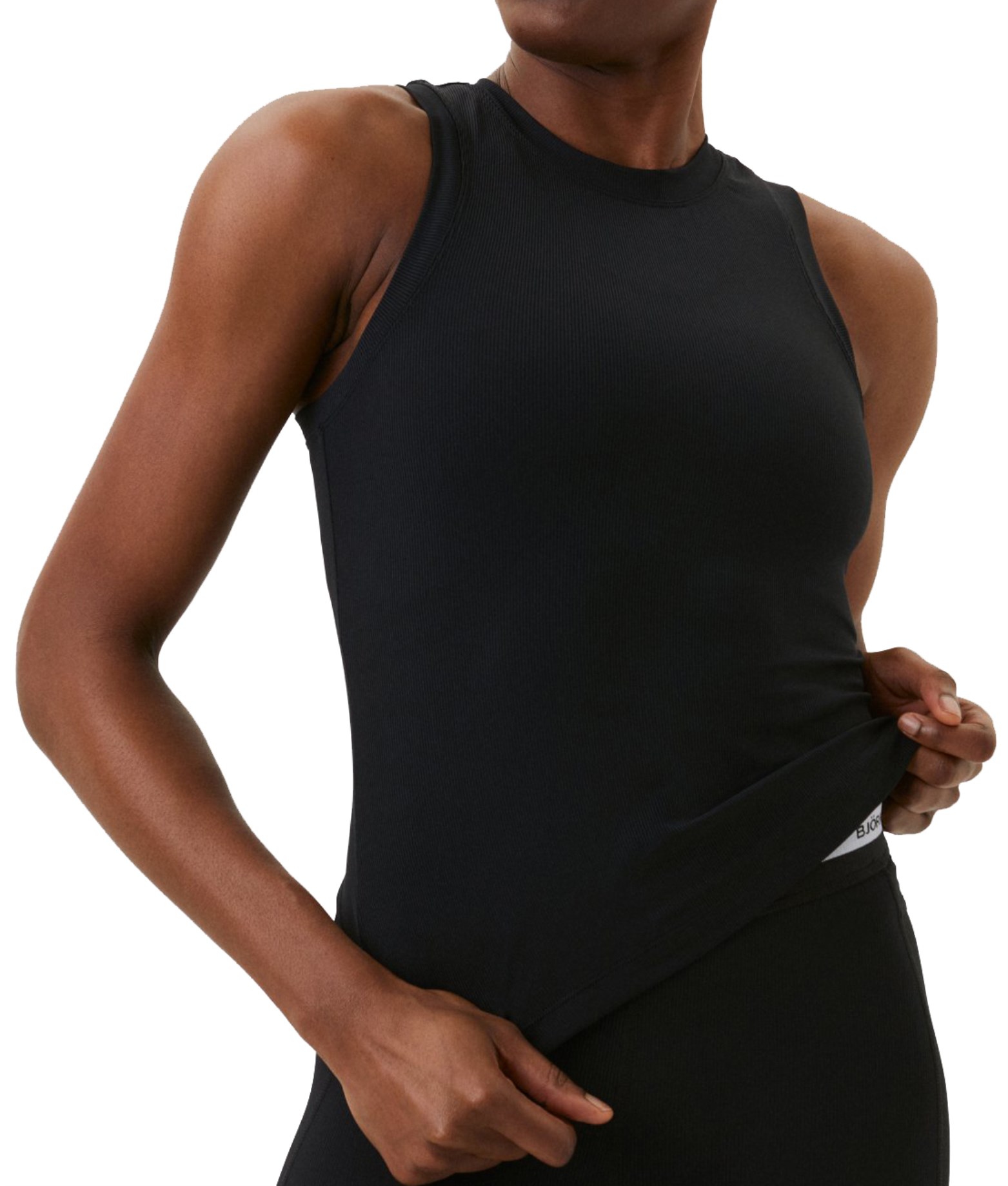 Björn Borg Rib Tank är ett mjukt och följsamt linne i ett ribbat material som känns lent mot huden. Tillverkat i återvunnen polyamid och elastan. Racerback, en rundad hals och ett snyggt och stilrent Björn Borg-tryck i nacken. Linnet har en nära och följsam passform och passar för olika typer av träning eller när du vill ha en sportig look i vardagen.