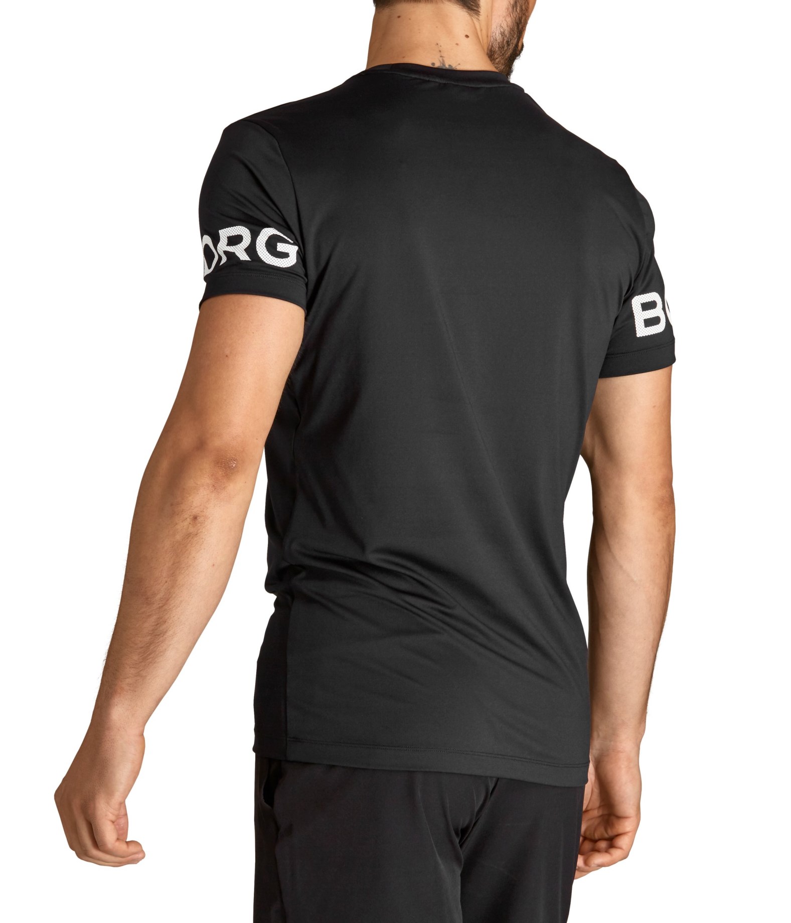 Björn Borg T-Shirt är en t-shirt är en bekväm t-shirt som passar till all typ av träning men även till vardags. En tunn, mjuk och stretchig t-shirt, tillverkad i återvunnen polyester och elastan. Snabbtorkande material som andas. Med funktionella detaljer som lite längre midja och ärmar som är placerade lite högre får du stor rörelsefrihet och kan ta dig an den tuffaste träningen.