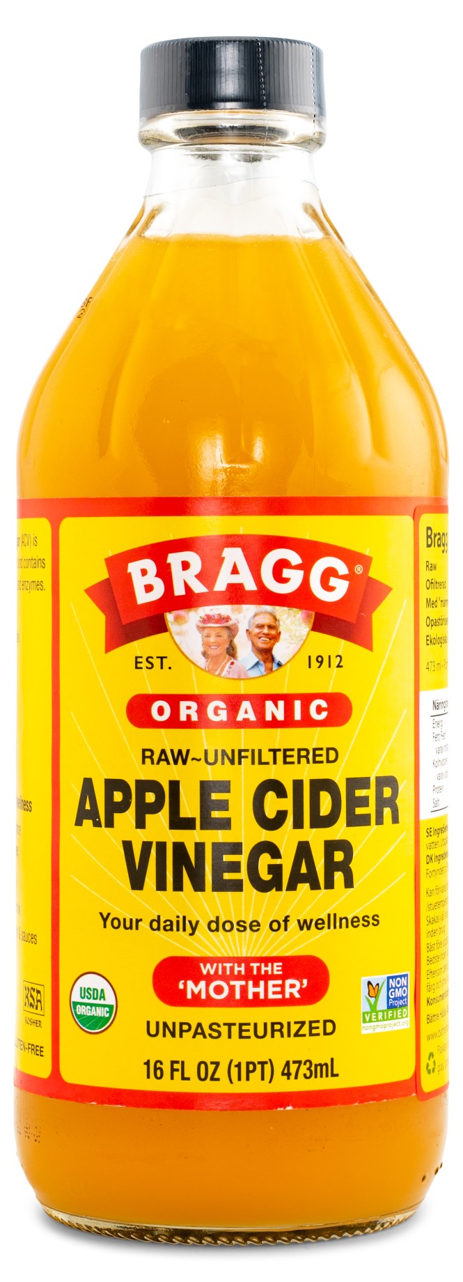 Bragg Äppelcidervinäger EKO är en ekologisk och rå äppelcidervinäger som är framställd av odlade äpplen av högsta kvalitet. Denna äppelcidervinäger anses vara en av de finaste i världen och har blivit en riktig hälsotrend i USA. Bragg Äppelcidervinäger EKO är helt raw, vilket betyder att den är ofiltrerad, ouppvärmd, opastöriserad och innehåller 5 % syra. Dessutom innehåller den något unikt som kallas för "mamman" (The Mother), som visar sig som en mörk och grumlig substans i äppelcidervinägern och detta bildas naturligt av pektin och äppelrester. Vinäger som innehåller den så kallade "mamman" har ett enzym- och mineralrikt innehåll. Bragg Äppelcidervinäger EKO kan användas likaväl för invärtes bruk, exempelvis för att kickstarta kroppen på morgonen, som för utvärtes bruk, exempelvis att göra håret mjukare och mer lätthanterligt.