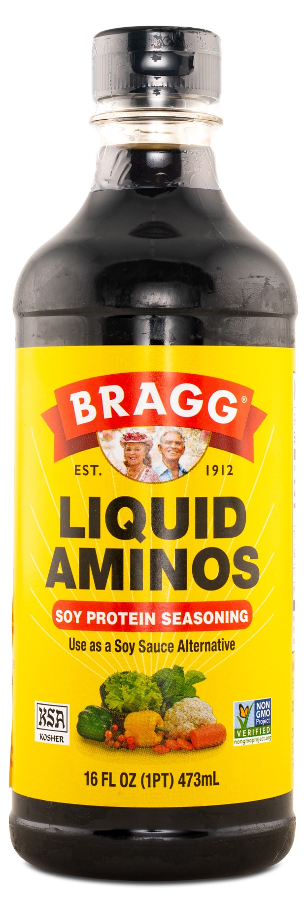 Bragg Liquid Aminos fungerar som ett utsökt substitut till sojasås och tamari, och kan ätas till kött, fisk, fågel, wok, soppa och mycket mer som en smakhöjare utan onödiga kalorier. Bragg Liquid Aminos är tillverkad av protein från certifierat icke-GMO sojabönor, vilket har gett den ett högt innehåll av essentiella aminosyror. Ingenting är tillsatt i produkten och den är helt fri från fett och socker. Liquid Aminos har inte blivit upphettad och fermenterad.