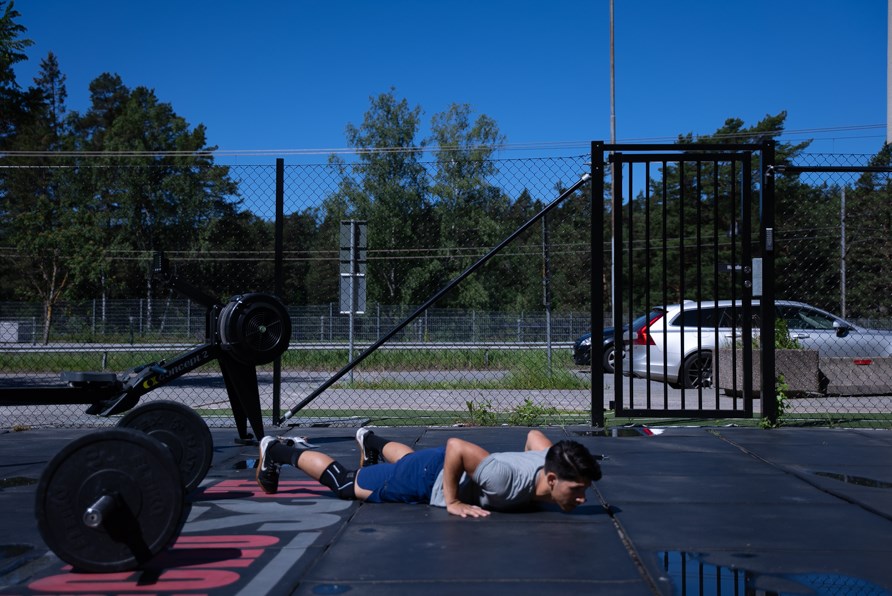 Fokus överkroppsstyrka med enbart dig själv som redskap.