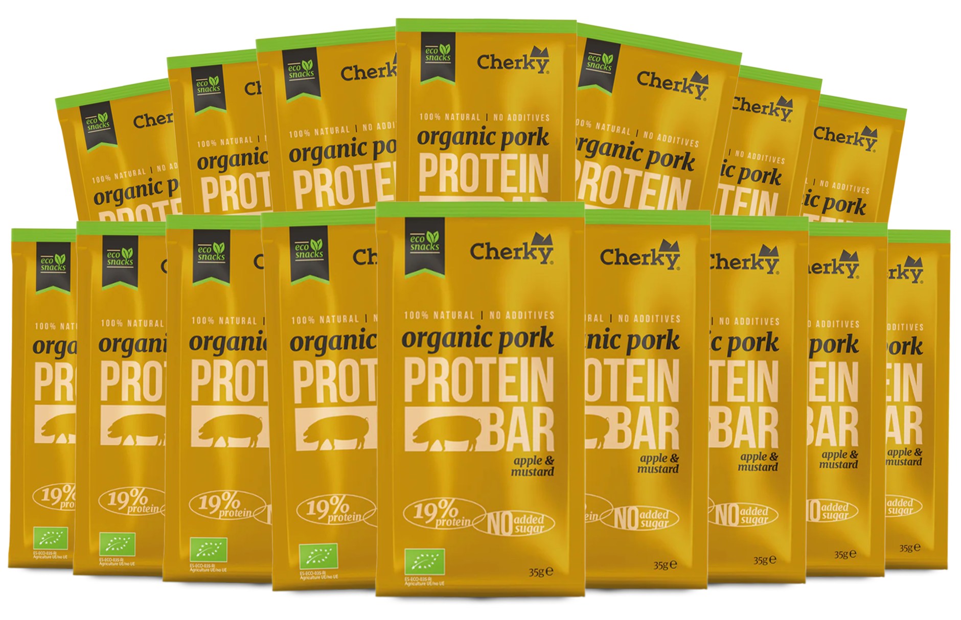 Miniatyrbild Cherky Foods Meat Bar Pork Eco, Apple & Mustard, 16-pack