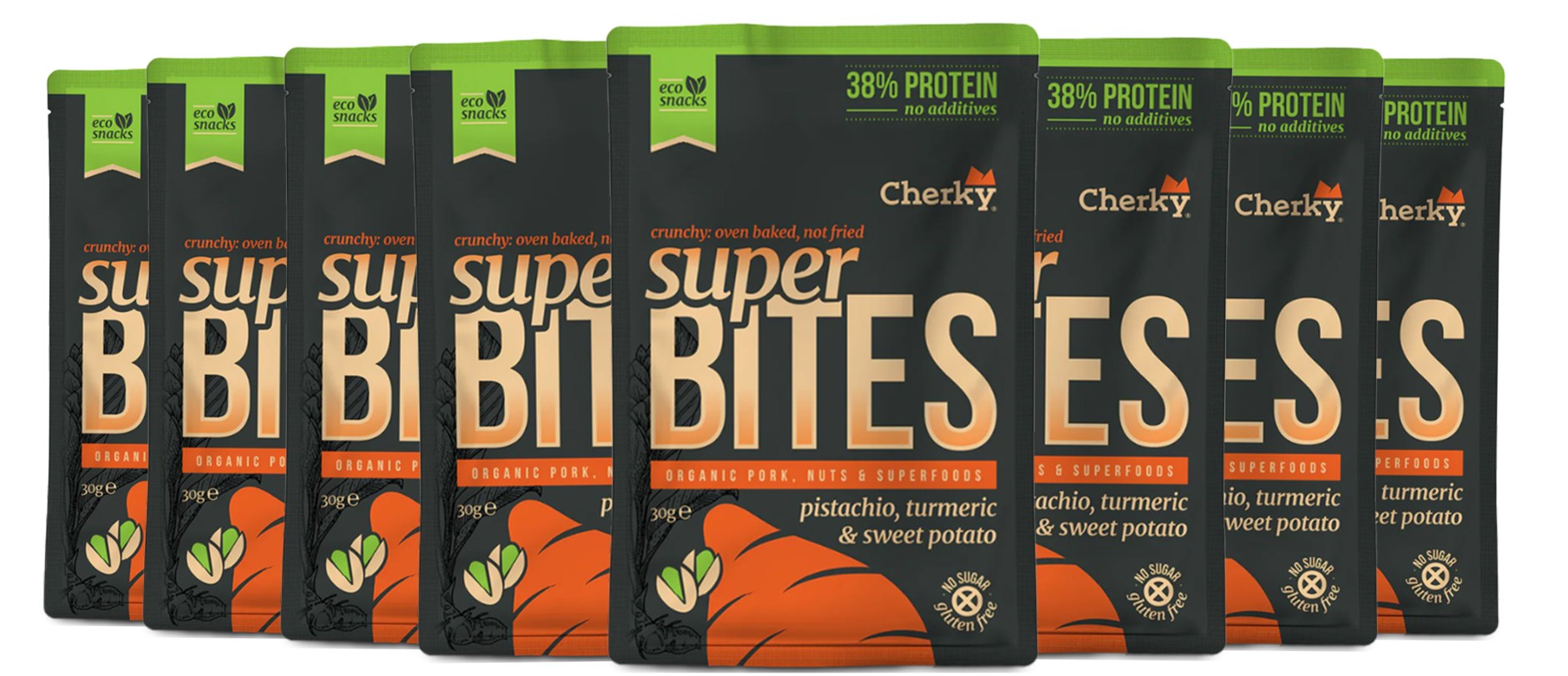 Miniatyrbild Cherky Foods Super Bites Eco, Pork,Pistachio,Tumeric & Sweet Potato, 8-pack