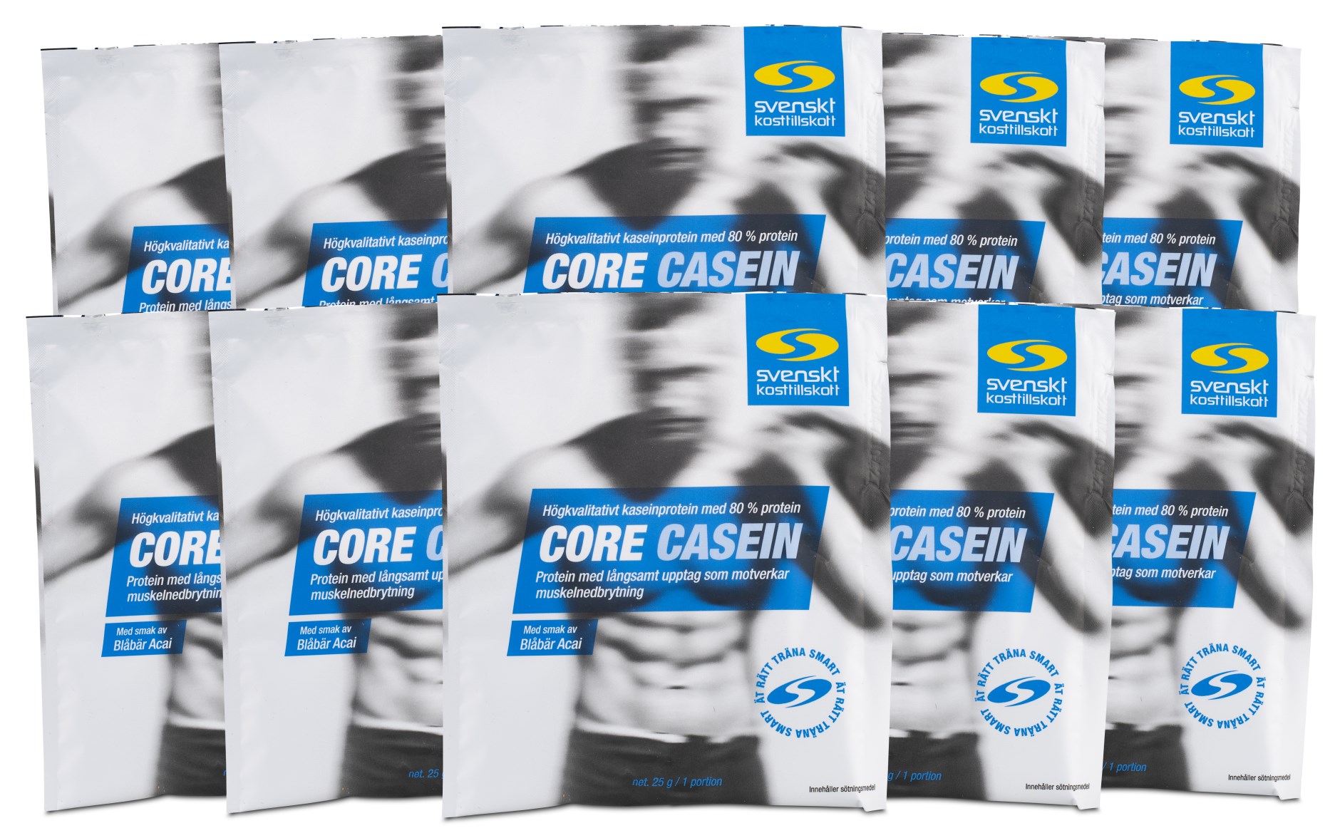 Core Casein Portionspåse ger dig möjlighet att på ett smidigt sätt ta med dig en portion av proteinpulvret Core Casein! Perfekt när du är på språng. Med dessa portionspåsar kan du dessutom prova dig fram till vilken smak som passar dig bäst, utan att behöva köpa en stor påse direkt. Core Casein har ett högt proteininnehåll från mjölkprotein som utsöndras långsamt i kroppen – och ger därför en mättnadskänsla som håller i sig. Dessutom är Core Casein rik på näring och har ett lågt innehåll av laktos. Prova dig fram mellan de fylliga smakerna!