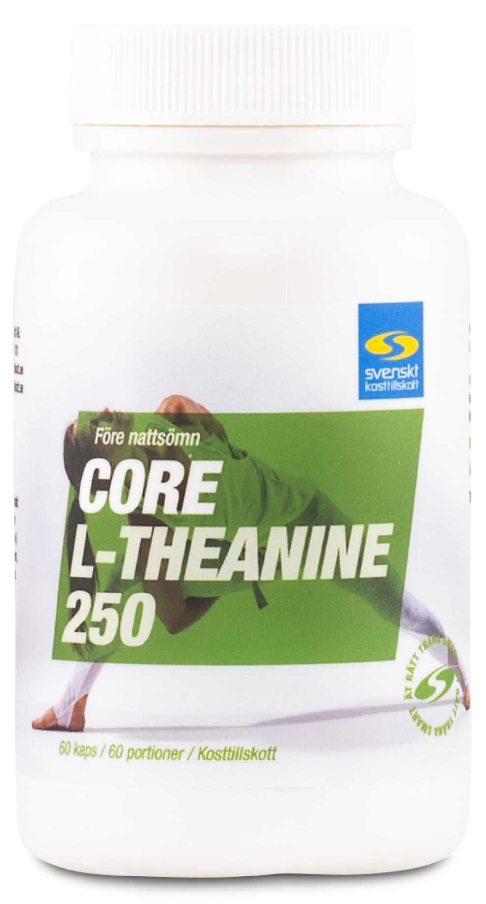 L-teanin är en icke-essentiell aminosyra som naturligt förekommer i tebuskens blad. I en kopp te som rymmer 2 dl är mängden omkring 20-60 mg teanin per kopp. Core L-theanine 250 innehåller 250 mg L-teanin och är ett mycket koncentrerat tillskott. Aminosyran L-teanin är inte proteinbildande utan har andra funktioner i kroppen. Ofta tas det i samband med nattsömn för en rogivande känsla. L:et i L-teanin kommer från att teanin främst förekommer i form av L-isomer.