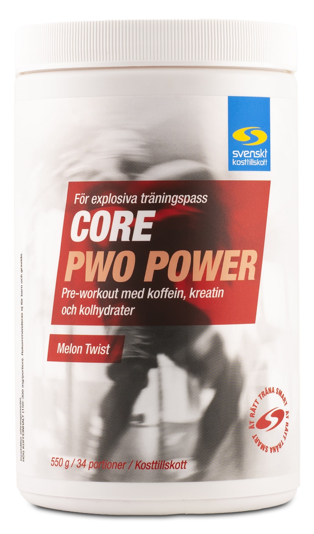 Under högintensiva eller långvariga träningspass behövs energi som räcker länge och därför har vi tagit fram Core PWO Power. Du får långvarig energi och bättre fokus med bland annat aminosyrorna citrulin och arginin samt koffein, rödbetsextrakt och kreatin. Kreatin ökar den fysiska prestationen vid upprepad kraftansträngning i samband med kortvarig och högintensiv träning. Du kan själv anpassa doseringen av Core PWO Power, mellan 1-2 portioner, så att det passar just din träningsform och intensitetsnivå samt beroende på din kroppssammansättning och din tolerans av koffein. Prova dig fram till det som passar dig bäst.
