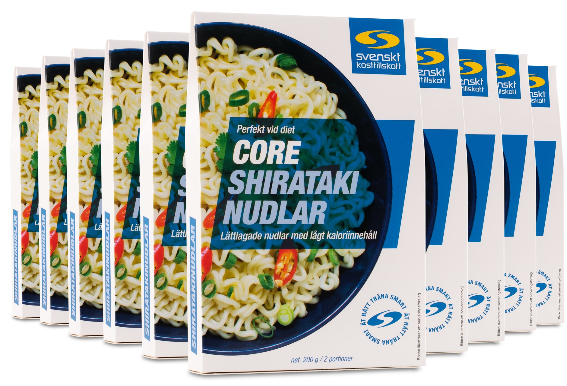 Core Shirataki Nudlar är de perfekta nudlarna när du vill laga kalorisnål mat. Nudlarna innehåller endast 14 kalorier per portion och är helt fria från fett och kolhydrater. Core Shirataki Nudlar är dessutom enkla att tillaga och passar även dig som söker glutenfri pasta. De är perfekta att använda vid dieter eftersom de är kalorisnåla och samtidigt mättande.