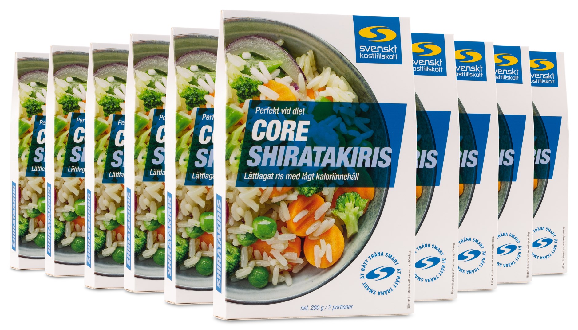 Core Shiratakiris från Svenskt Kosttillskott är ett perfekt alternativ när du vill laga en kalorisnål måltid och vill byta ut det vanliga riset. Riset innehåller endast 5 kalorier per portion och är helt fritt från fett. Med sitt låga kaloriinnehåll passar riset dig som går på diet och även dig som söker glutenfria alternativ då riset är helt glutenfritt. Vill du undvika kolhydrater är Shiratakiris också ett perfekt alternativ med sitt låga kolhydratinnehåll.