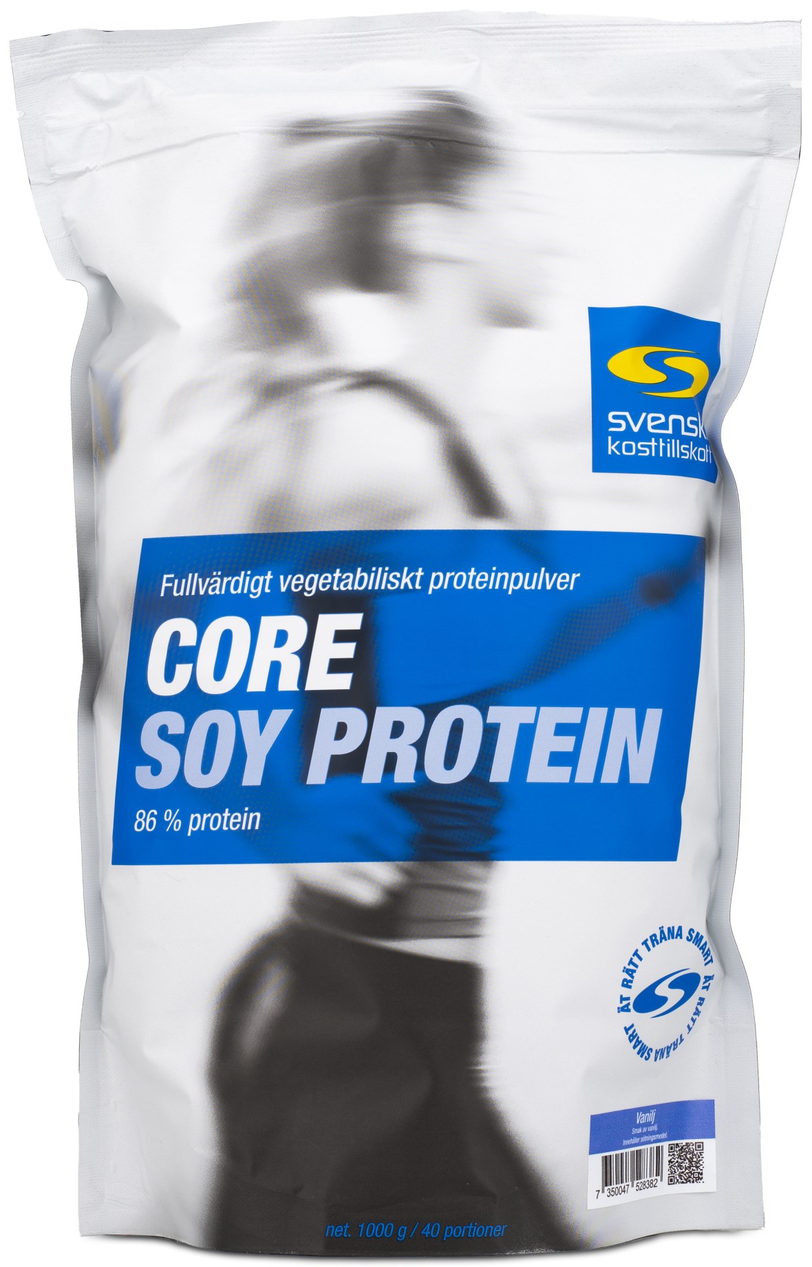 Core Soy Protein är ett proteintillskott baserat på rent vegetabiliskt protein från soja. Perfekt för dig som vill påskynda din återhämtning och uppbyggnad av muskelmassa efter träning, eller som ett nyttigt mellanmål. Sojaprotein är en högvärdig vegetabilisk proteinkälla och lämpar sig därför extra bra vid träning där man vill bevara muskelmassan. Core Soy Protein finns i flera goda smaker med olika sötning. Välj bland traditionella smaker som Choklad och Vanilj, eller Äpple för sötning av stevia, eller Naturell om du vill undvika både sötning och smakämnen för att blanda på ditt eget vis.
