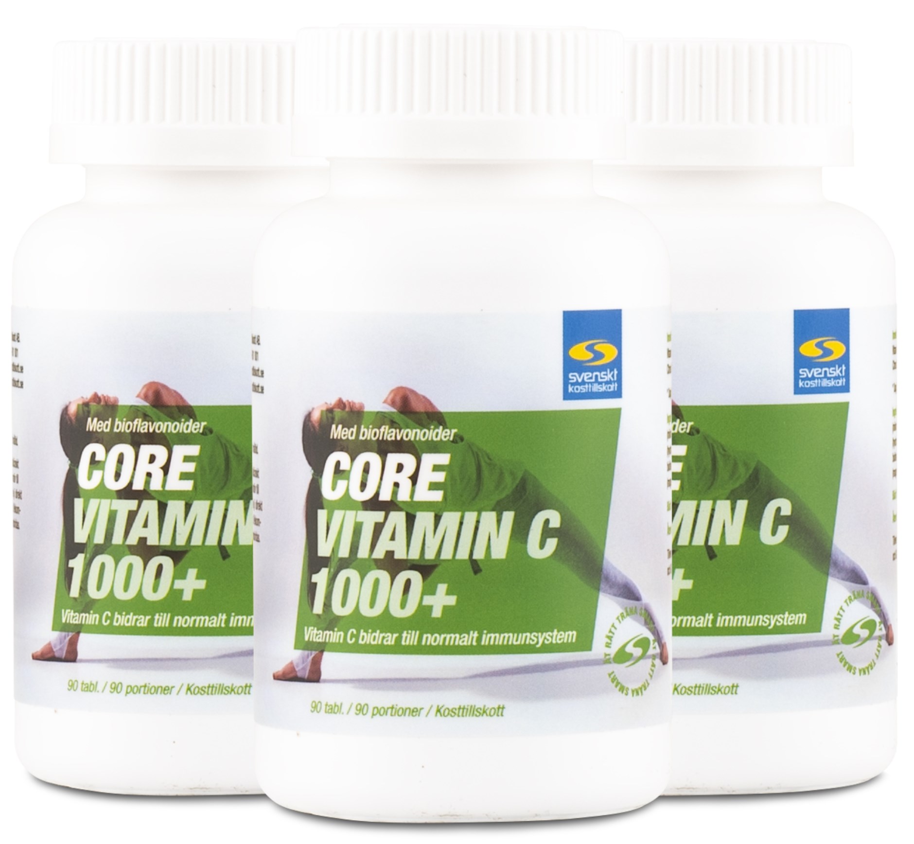 Core Vitamin C 1000+ är ett högdoserad tillskott av vitamin C i form av askorbinsyra. Dessa vitamintabletter är dessutom förstärkta med citrusbioflavonoider för ökad effekt. Vitamin C är en av våra mest välkända antioxidanter som bidrar till en normal uppbyggnad av brosk- och benvävnad samt ett normalfungerande immunsystem. Detta är särskilt intressant för dig som utmanar kroppen med hårda träningspass vilket gör immunsystemet extra utsatt, men även för dig som håller ett högt tempo i övriga livet. Core Vitamin C 1000+ är helt enkelt framtaget för att fungera för en aktiv livsstil och passar dig som vill komplettera din kost med extra intag av vitaminer. Eftersom Core Vitamin C 1000+ är så pass högdoserad räcker en tablett om dagen för att få i dig rikligt med C-vitamin.