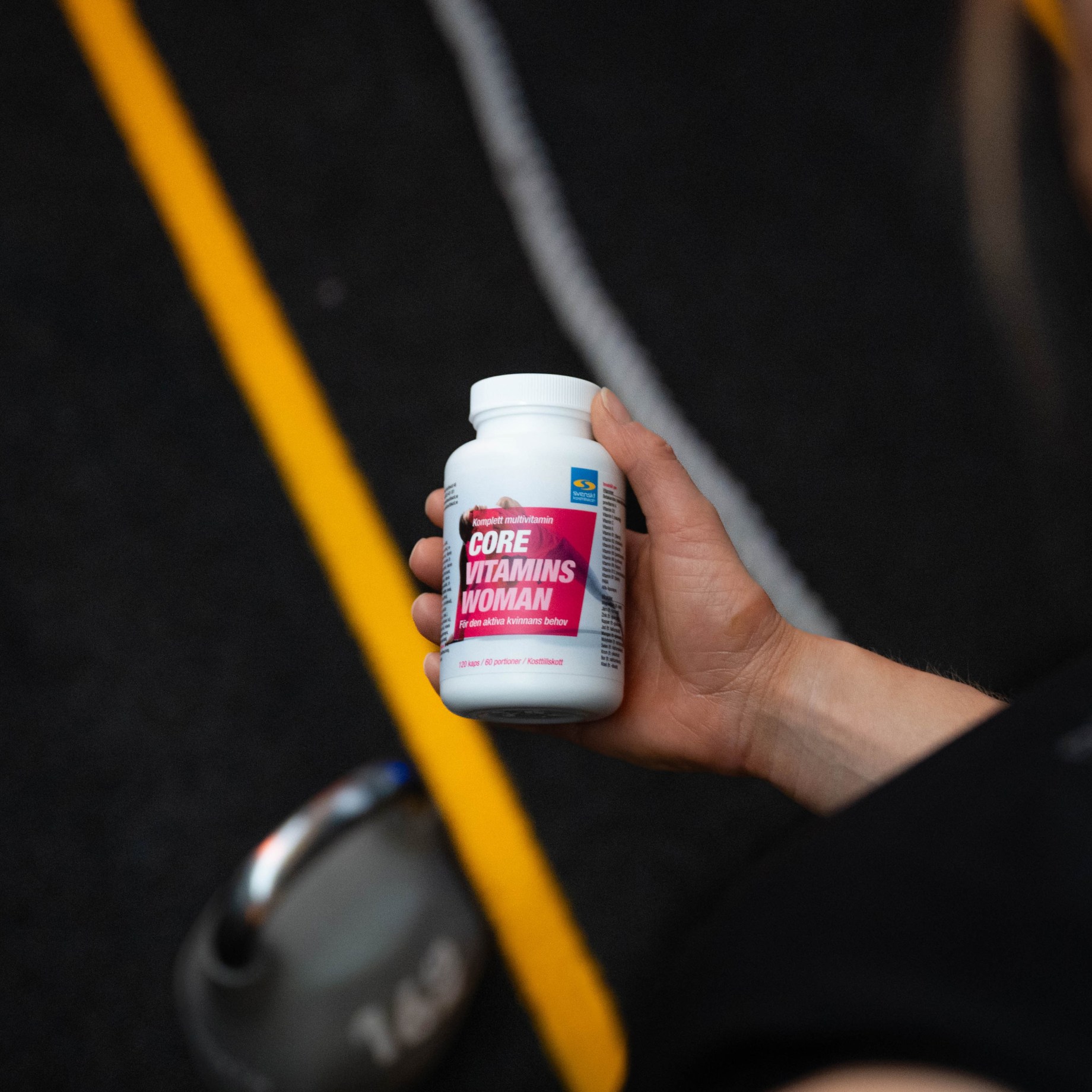 Core Vitamins Woman är ett multivitamin med viktiga vitaminer och mineraler som aktiva kvinnor har nytta av. Med Core Vitamins Woman kan du säkerställa ditt dagliga intag av vitaminer och mineraler med bara två kapslar per dag. De högdoserade kapslarna innehåller bland annat folsyra och järn som behövs för en normal blodbildning och är extra viktigt för kvinnor i fertil ålder. Kapslarna innehåller även coenzym Q10. Läs mer om vitaminer och mineraler för kvinnor i vår artikel.