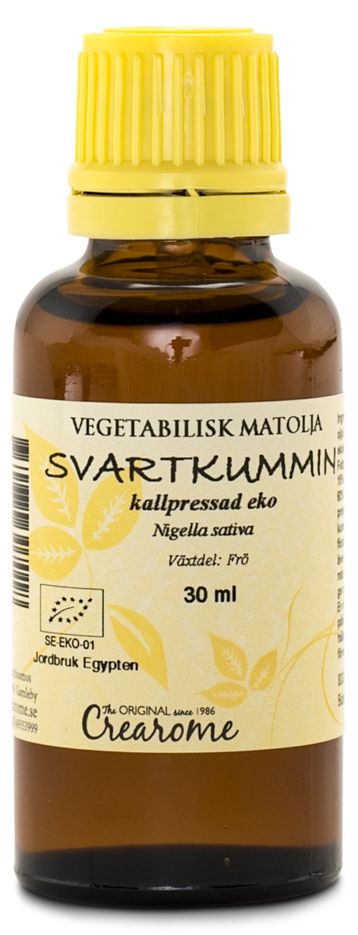 Svartkumminoljan från Crearome är helt vegetabilisk och kallpressad från ekologiska kumminfrön. Oljan kan användas som matolja eller som hälsotillskott precis som den är. Svartkumminoljan är främst avsedd för invärtes bruk, men kan även användas som lugnande hudolja.