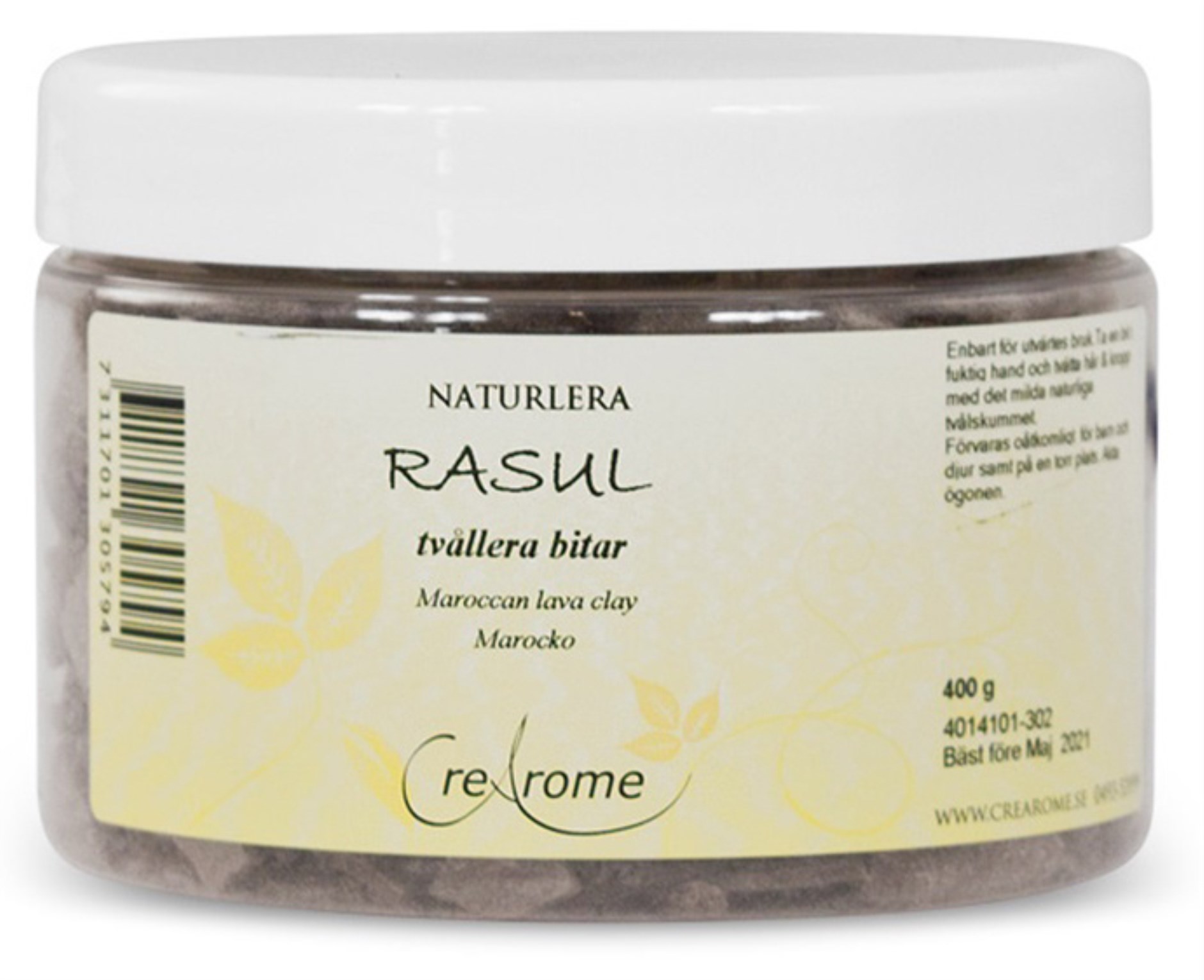 Rasul tvållera är en mycket speciell sorts lera som länge använts för rengöring av hud och hår. Denna lera hjälper till att absorbera fett och smuts på ett mycket skonsamt sätt, och lämnar huden och håret lent och mjukt, perfekt för dig med känslig hud eller hårbotten!