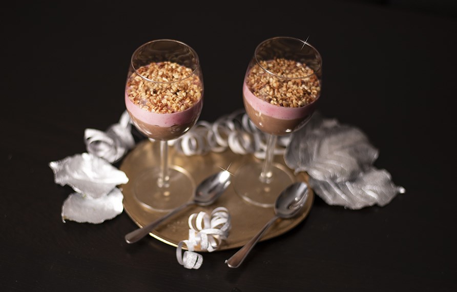 Dadelchokladmousse med rostade hasselnötter