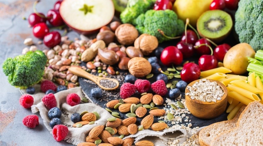 - - Goda källor till fiber är frukt, grönsaker, fullkorn och baljväxter