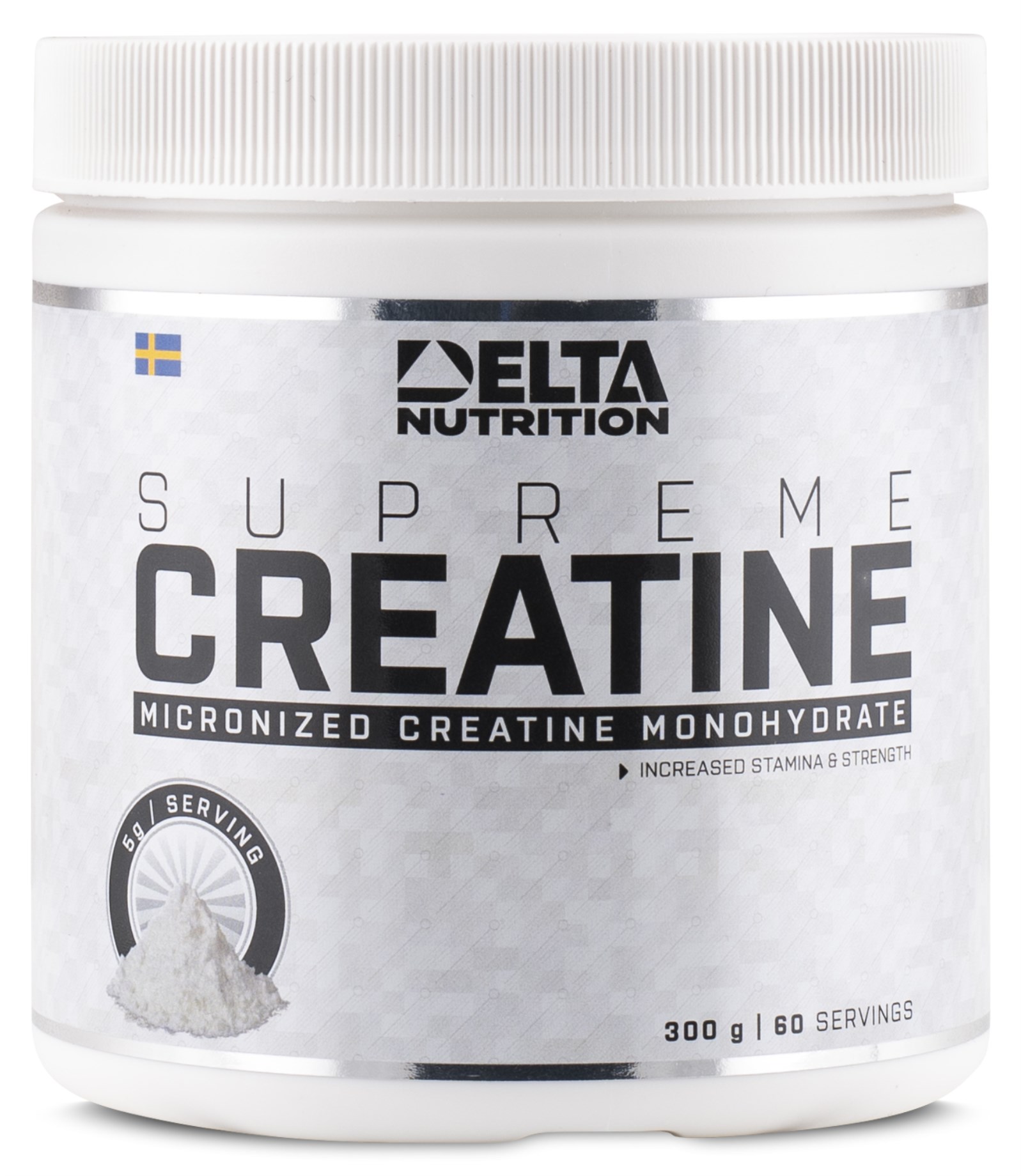 Öka din fysiska prestation med Delta Nutrition Supreme Creatine, ett rent och högkvalitativt mikroniserat kreatinmonohydrat helt utan tillsatser. Perfekt för dig som tränar högintensivt och vill öka uthålligheten, styrkan och explosiviteten! Kreatin har länge använts som tillskott och är ett välbeprövat ämne som ökar bildandet av energireserven adenosintrifosfat (ATP). Delta Nutrition Supreme Creatine är ett givet val för dig som vill ha ett kreatin utan konstigheter. Extra effektivt tillsammans med snabba kolhydrater som transporterar in kreatin i muskelcellerna.