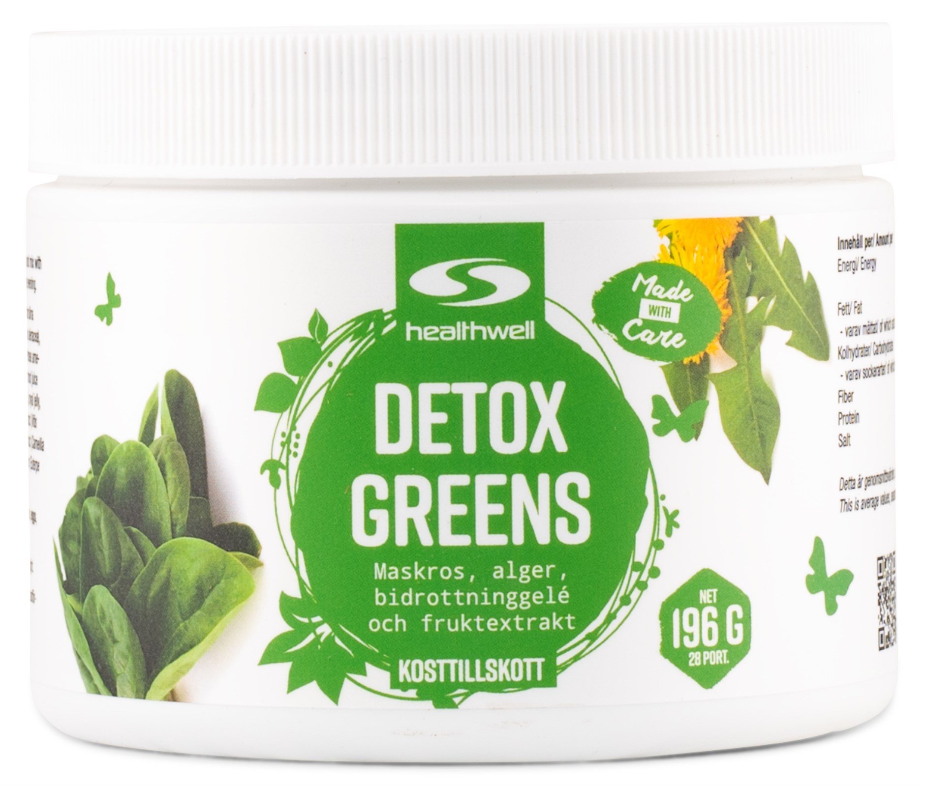 Healthwell Detox Greens är en helt naturlig produkt där varje portion motsvarar en stor mängd frukt och grönsaker. Det kan användas under en detoxkur eller som ett komplement till din dagliga kost. En detoxkur sträcker sig vanligtvis över 7-14 dagar och syftar till att rensa kroppen från slaggprodukter eller ge en kickstart till en hälsosammare livsstil. Ibland kan även en kortare detox på 2-3 dagar efter en helg med mycket mat och onyttigheter vara skönt för att hjälpa kroppen på traven, och för att psykiskt känna en balans igen.