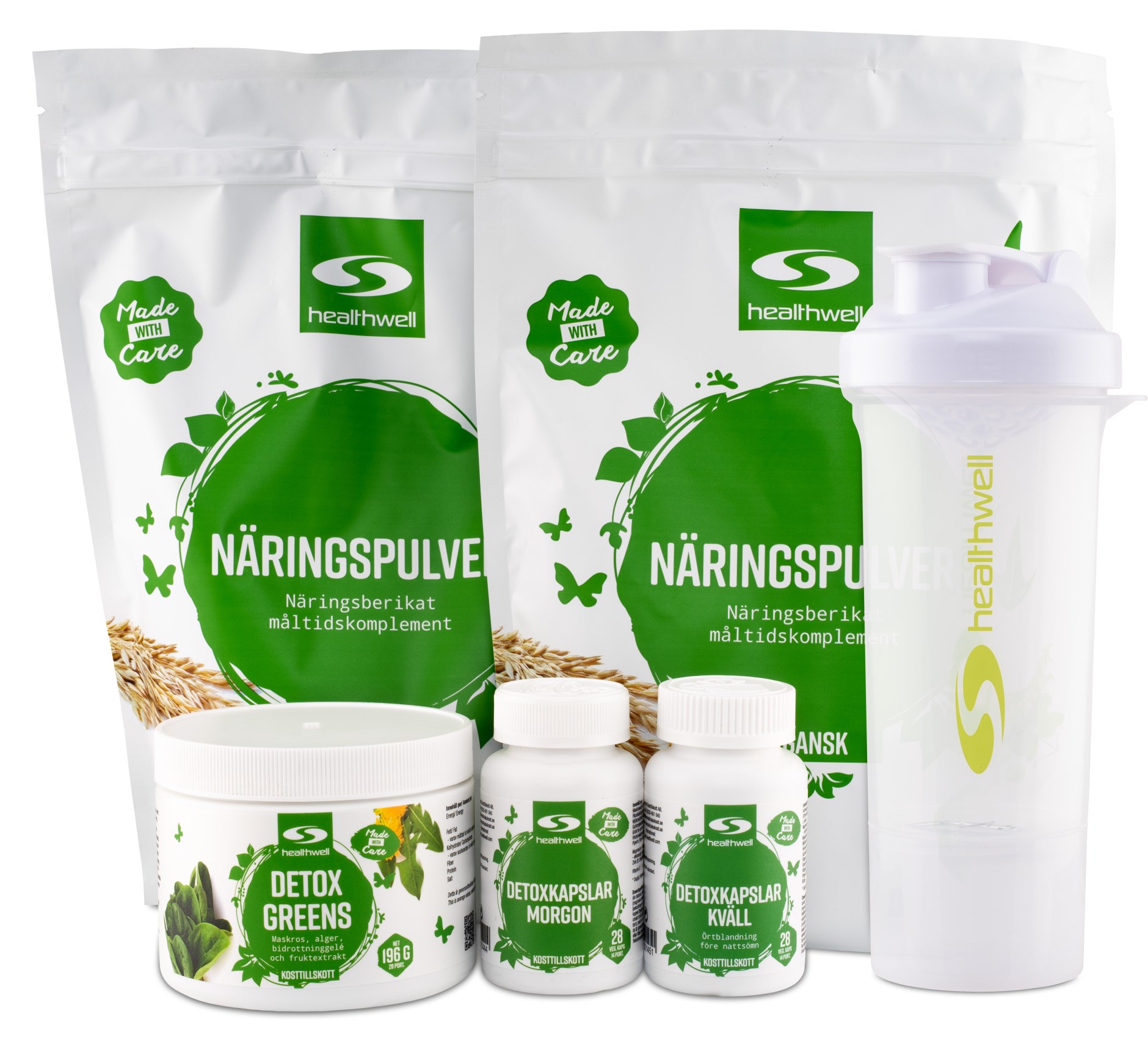 Healthwell Detoxkur 14 dagar är ett komplett paket med tillskott för dig som vill göra en hälsosam detox. Under en detox minskar du intaget av livsmedel som kan ge upphov till oönskade ämnen i kroppen, samtidigt som du tillför viktiga näringsämnen. Det bidrar till bättre upptag av näring. Produkterna fungerar lika bra för en kortare, mer intensiv detox på 7 dagar.