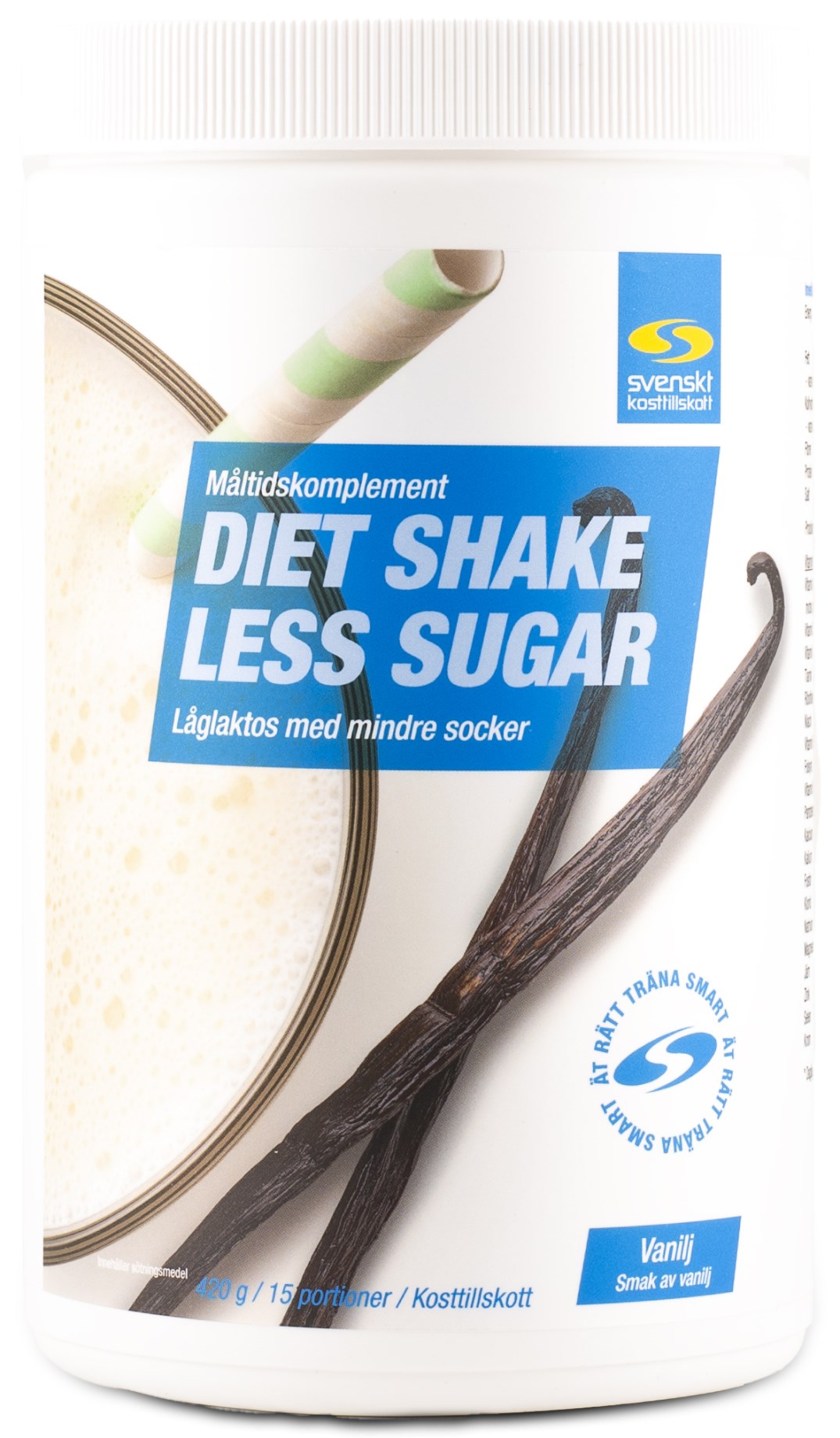 Diet Shake Less Sugar är en vidareutveckling av vår populära Diet Shake. Den har samma rika innehåll av näringsämnen, vitaminer och mineraler. Diet Shake Less Sugar innehåller dock hälften så mycket socker som Diet Shake. Diet Shake Less Sugar har även låg laktoshalt för att passa dig som är känslig mot laktos. Oavsett vilken Diet Shake som är din favorit får du ett kraftigt reducerat kaloriintag vilket underlättar för dig som vill gå ner i vikt.