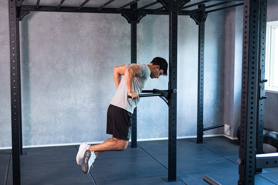 • Använd dig av ett långt gummiband för att få lite hjälp att lyfta upp kroppen. Bandet fäster du enkelt på dipsställningen och sedan placerar du ena knät på bandet så att du får draghjälp uppåt när du gör dina dips.