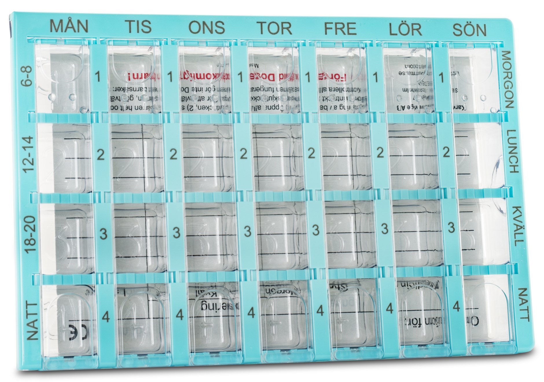 Med Dosett® Medi kan du på ett enkelt sätt dosera dina mediciner, vitaminer och mineraler. Denna dosett är i en mediumstorlek och låter dig enkelt planera dina tabletter för en veckas konsumtion. Dosett® Medi är mycket enkel att använda och kan även lätt bäras med. Dosetten är utrustad med en barnspärr och bruksanvisning så att du lätt vet hur den ska användas. Ordinationskort medföljer också som enkelt kan bytas ut då de blir inaktuella. Dosetten har även en löstagbar insats som gör att du enkelt kan rengöra den eller byta ut mot en ny. Om du är ute efter en mindre dosett så finns även Dosett® Mini.