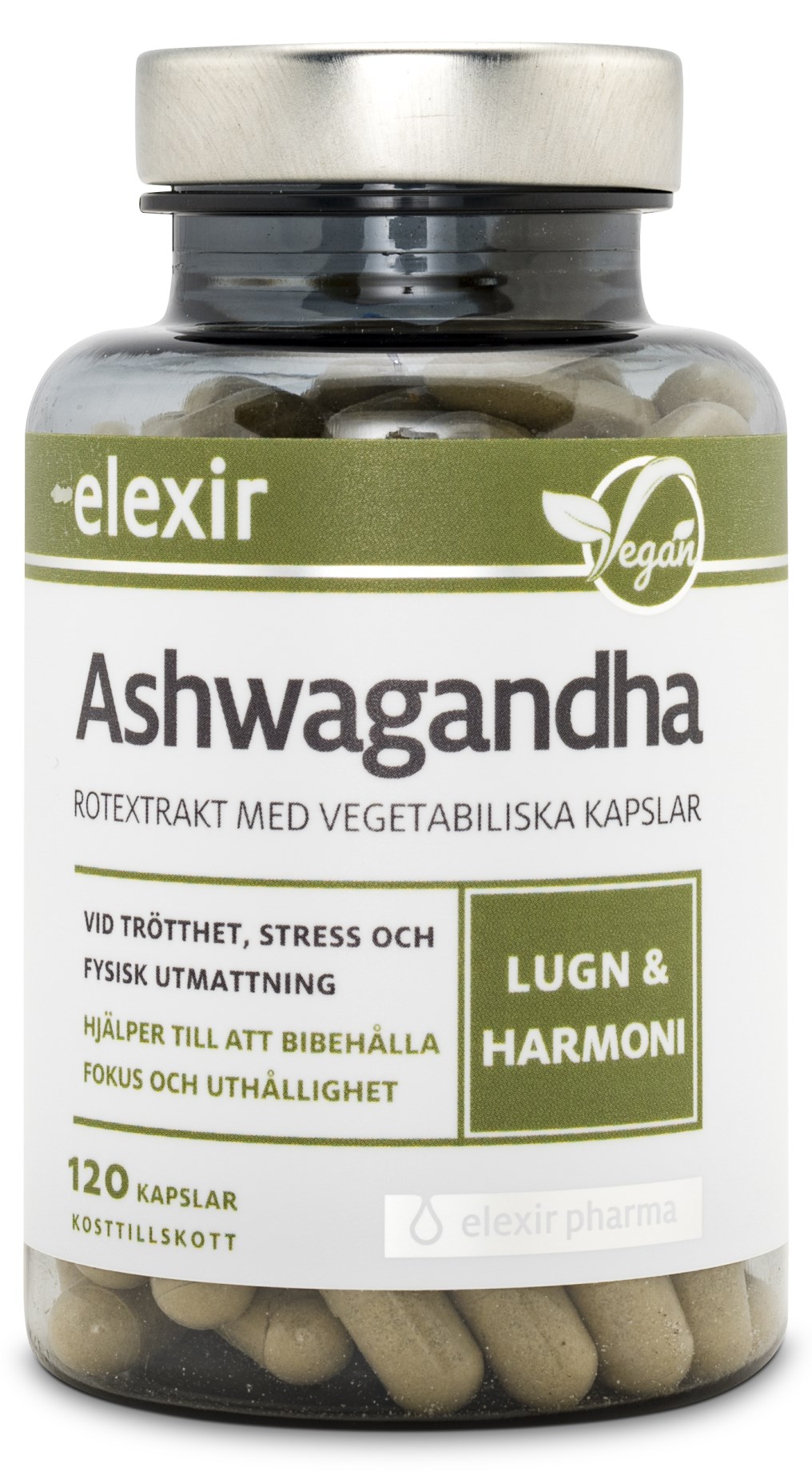 Elexir Ashwagandha är ett kosttillskott från Elexir Pharma och som innehåller den kraftfulla örten ashwaganha samt vitamin B5. Ashwagandha är en adaptogen ört, vilket innebär att den innehåller ämnen som bidrar till kroppens förmåga att anpassa sig efter exempelvis stress. Därför är detta kosttillskott från Elexir Pharma ett bra komplement om du lider av tillfällig trötthet och stress.