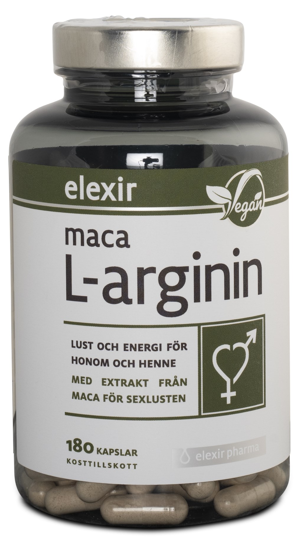 Elexir Pharma Maca L-arginin är ett kosttillskott som passar både för kvinnor och män. Bland annat så innehåller kapslarna en sammansättning av ämnen som tillsammans ökar bildandet av kväveoxid. Kväveoxid är viktigt för att blodcirkulationen ska bibehållas i kroppens genitala delar. Kapslarna innehåller dessutom maca som har en dokumenterat effekt som lusthöjare både för män och kvinnor. Macaroten är även rik på vitaminer och mineraler som bidrar till en upplyftande känsla. Så testa själv Elexir Pharma Maca L-arginin i perioder när energin är låg och då du vill få en ökad lustkänsla.