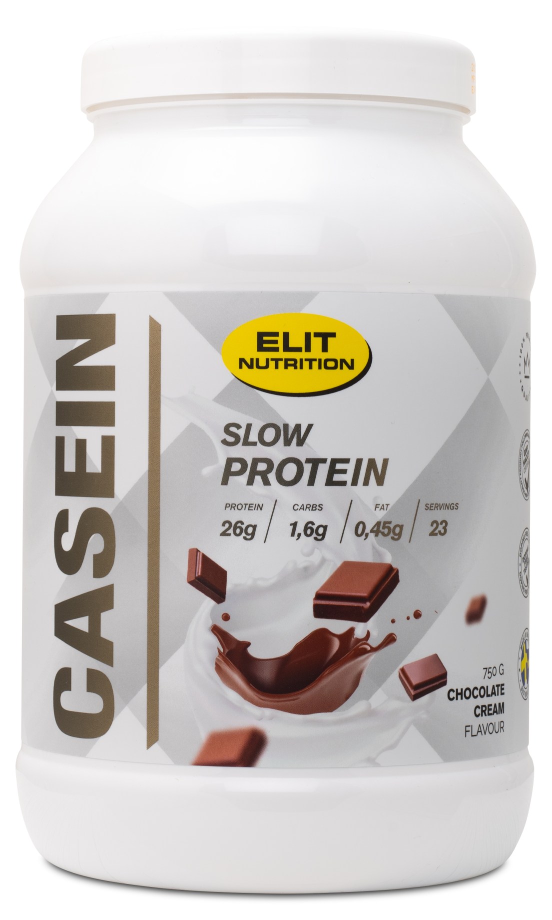 ELIT Casein från ELIT Nutrition är ett högkvalitativt kasein med långsam utsöndring av aminosyror, vilket gör det till ett protein som tas upp långsamt av kroppen. Detta gör ELIT Casein till ett perfekt mellanmål för dig som vill maxa ditt proteinintag över dagen eller under natten. Detta glutenfria tillskott innehåller hela 27 gram protein per skopa från kalciumkaseinat och micellärt kasein. ELIT Casein kan blandas till en god shake eller ätas som en krämig pudding. Finns i fyra goda smaker!