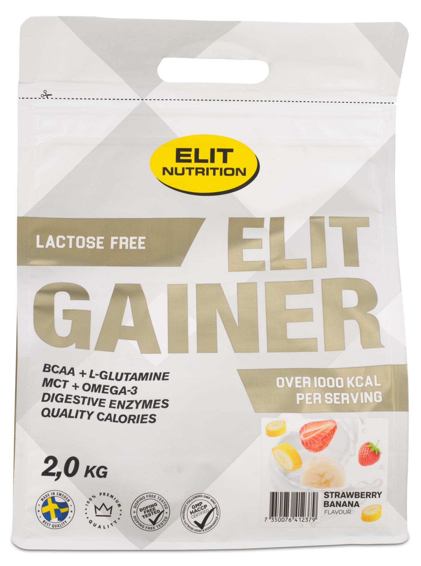 ELIT Gainer Laktosfri är för dig som vill bygga högkvalitativ muskelmassa och maximera din återhämtning. Denna gainer är utvecklad för dig som bulkar och vill gå upp i vikt. En portion ger dig över 1000 kcal per portion i form av vassleprotein, mjölkproteinisolat, komplexa kolhydrater, MCT-fett från kokosfett samt omega-3. ELIT Gainer är laktosfri och berikad med aminosyran L-glutamin. Den innehåller även en naturlig frukt- och bärmix som ger dig flera näringsämnen på ett naturligt sätt. För att stödja matsmältningen är ELIT Gainer också berikad med matspjälkningsenzymer. Ta träningen till nästa nivå med ELIT Gainer!