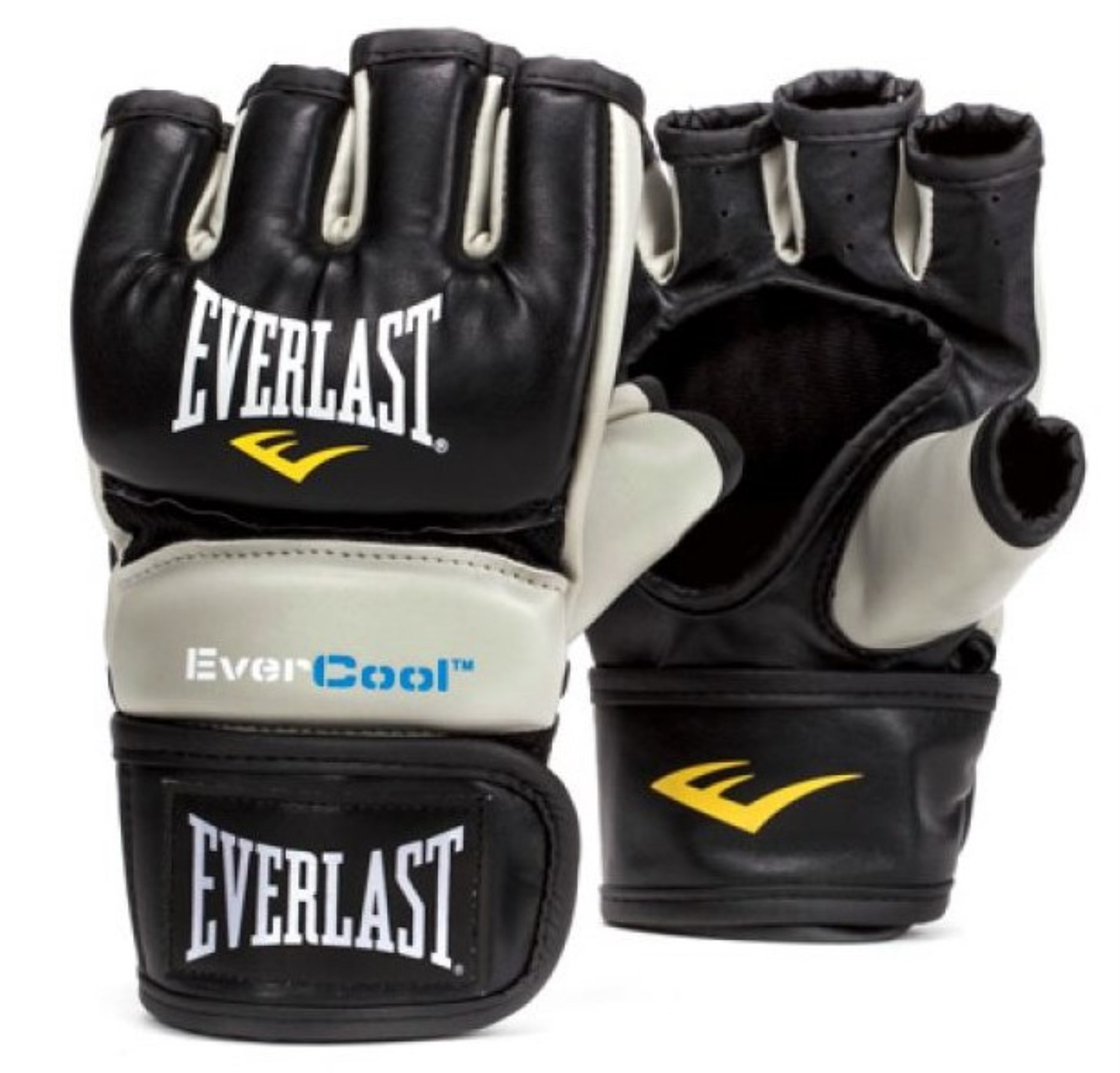 Everlast Everstrike Training Gloves är ett par mångsidiga handskar som passar perfekt för MMA och boxning. Handskarna gör det enkelt för snabba övergångar från exempelvis konditionsträning till sparring- eller säckträning. Tillverkade i syntetiskt läder samt stoppade med ett vadderat skum som håller dina händer och knogar säkra vid slag. EverCool-systemet och EverDri-teknologin håller händerna torra även under de svettigaste passen. Smidig kardborre för storleksjustering och handledssupport.