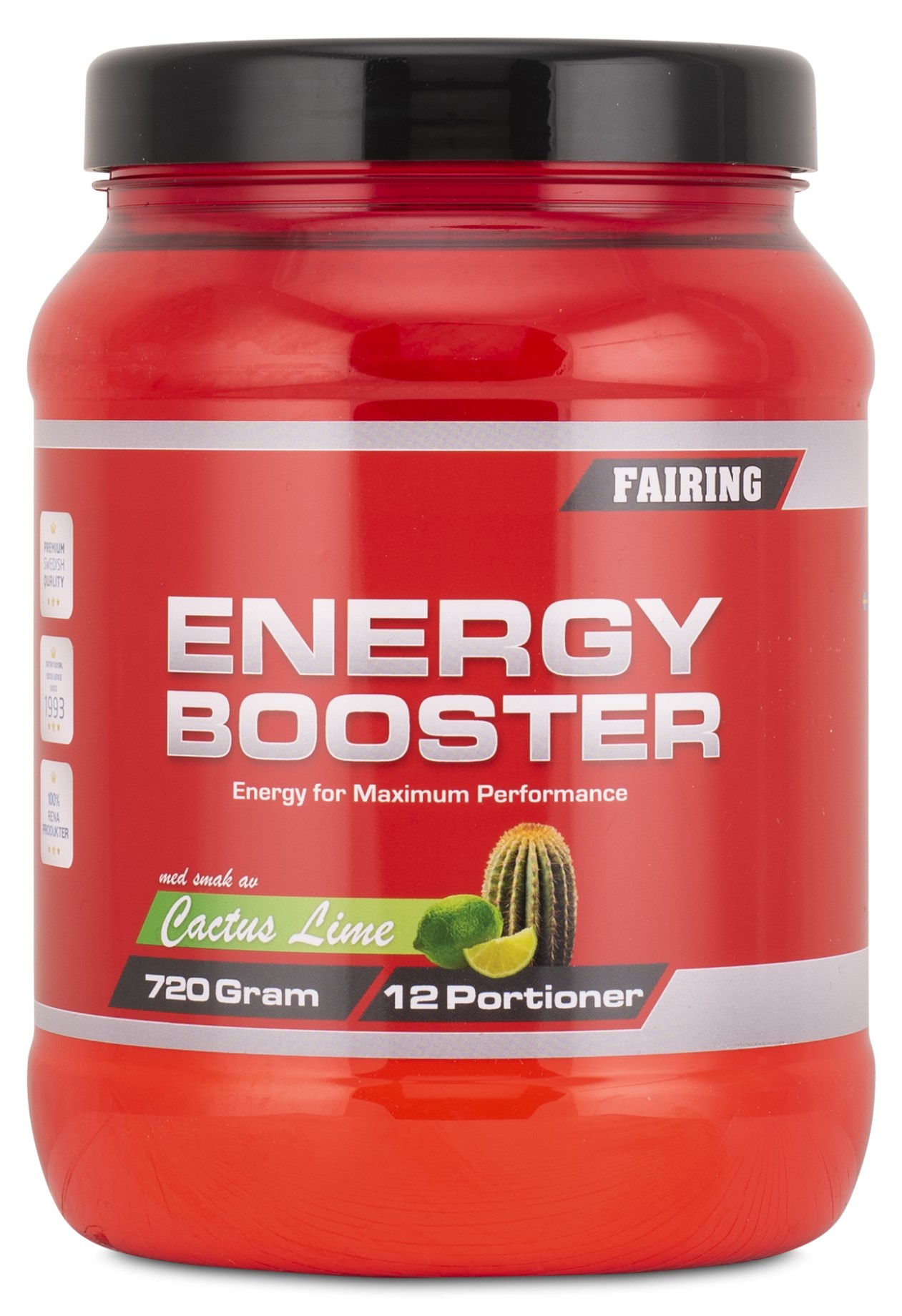 Fairing Energy Booster New Formula är en avancerad hypoton sportdryck, designad för att optimera din prestation och återhämtning. Denna unika sportdryck kombinerar två snabba kolhydratkällor med viktiga elektrolyter, vilket ger omedelbar energi och hjälper till att ersätta förlorade salter och mineraler under fysiskt krävande aktiviteter. Med en fräsch smak av apelsin och lime, erbjuder Energy Booster en uppfriskande upplevelse som är särskilt skonsam för magen, vilket gör den perfekt även under de mest intensiva träningspassen.