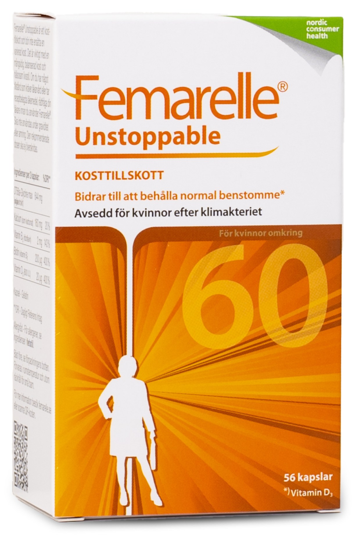 I övergångsåldern kan de låga östrogennivåerna medföra att slemhinnan i underlivet blir tunnare och torrare vilket kan medföra ökad känslighet för infektioner i underliv och urinvägar. Dessutom påverkar de låga östrogennivåerna benhälsan negativt. Femarelle Unstoppable är ett kosttillskott med vetenskaplig dokumentation som bidrar till normal benhälsa och normala slemhinnor i underlivet. I innehållet finns bland annat ingredienser såsom kalcium som bidrar till upprätthållandet av ett normalt skelett, vitamin B2 som bidrar till att minska trötthet och utmattning samt biotin som stödjer nervsystemets normala funktion och bidrar till normal funktion av slemhinnorna.