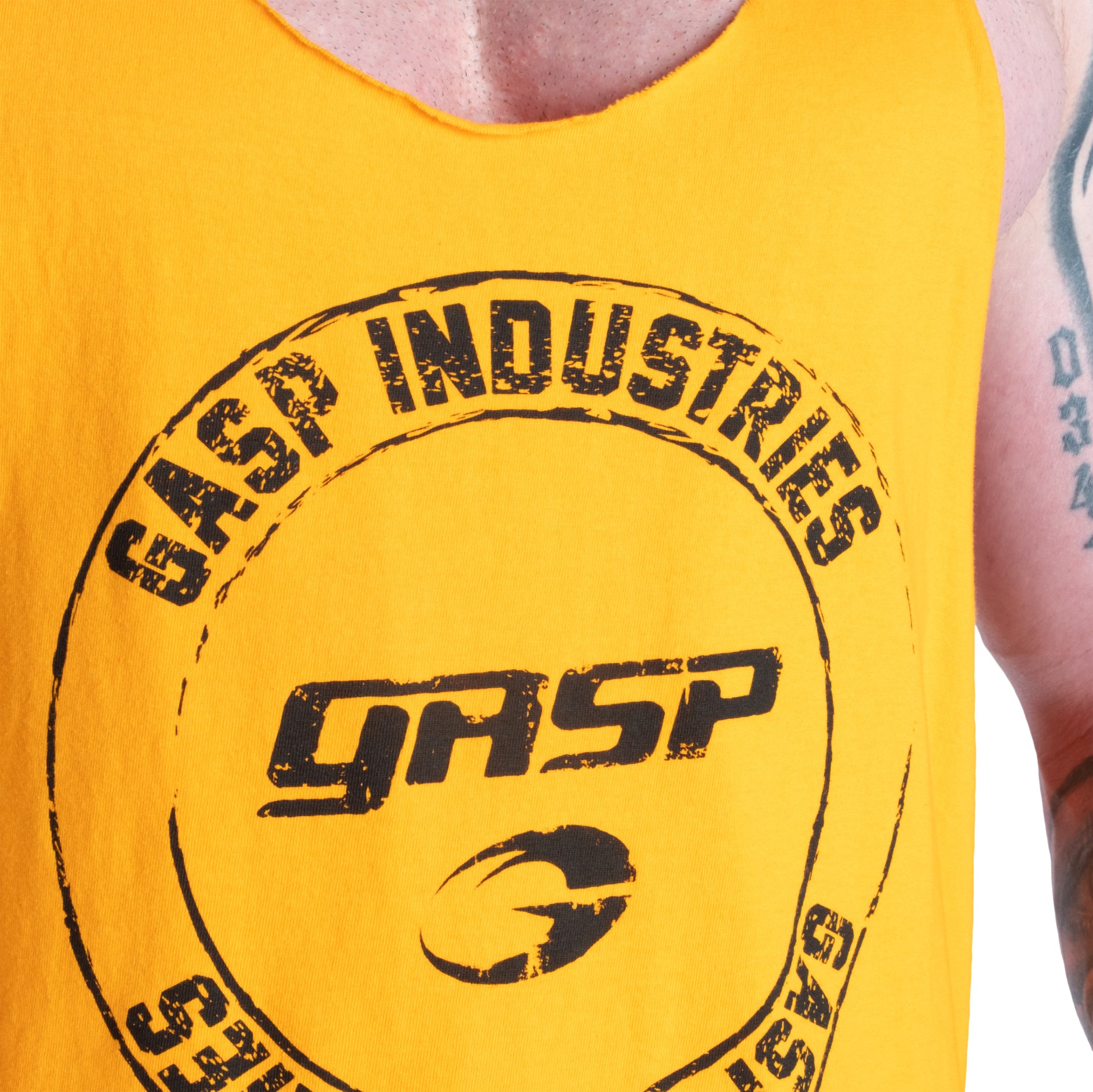 GASP Stringer kombinerar traditionell design med moderna detaljer. Linnet har råa kanter och ett GASP-tryck på bröstet. Perfekt för dina tunga rygg- och armpass, med en rymlig passform som ger plats för maximal pump.