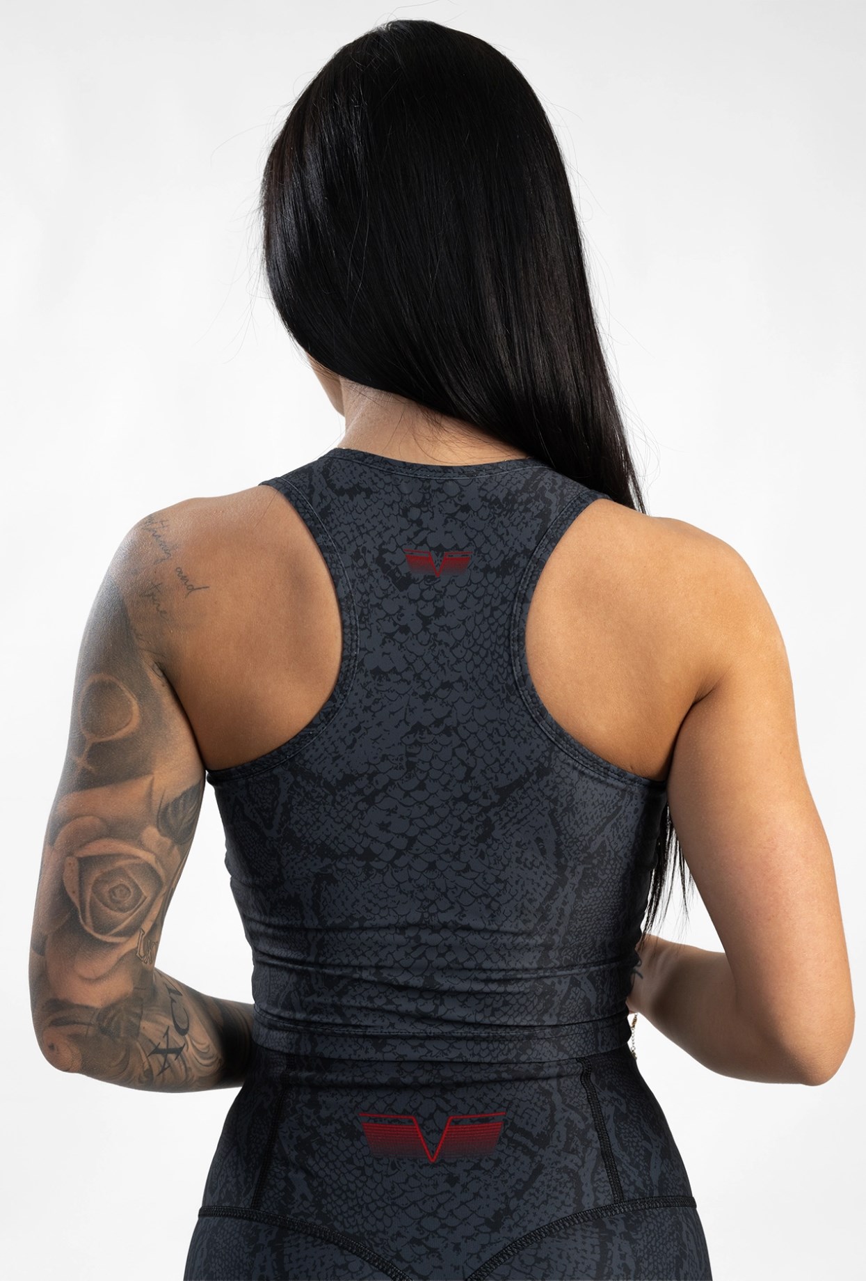 Träna med stil i Gavelo Viper Topp, en topp med mjukt och skönt tyg samt med en inbyggd sport-bh som ger lätt stöd. Toppen har snygga detaljer som en dragkedja framtill samt ett snyggt reptilmönster i blått och svart. En topp som passar till alla olika träningsformer med sin utmärkta passform. Matcha med Viper Compression Tights för en komplett look!