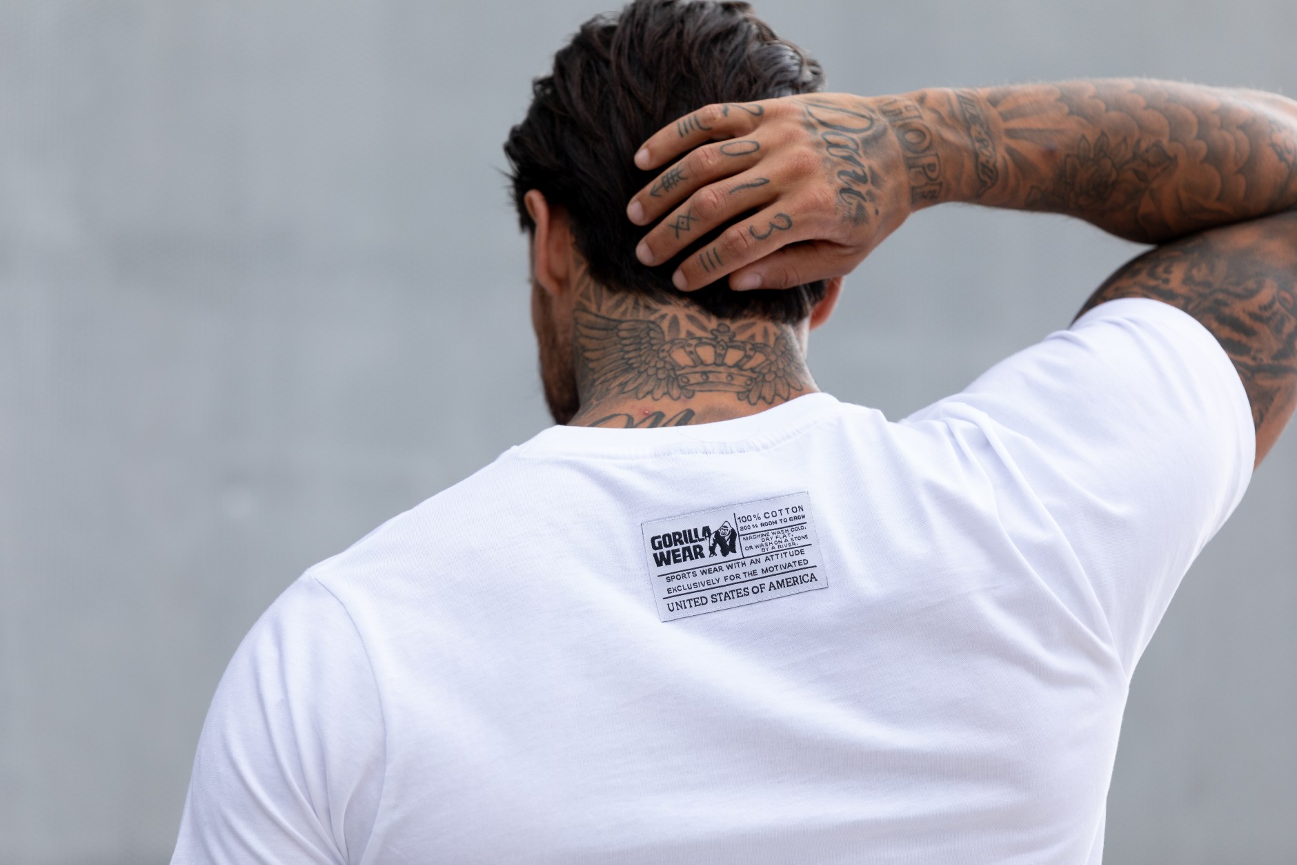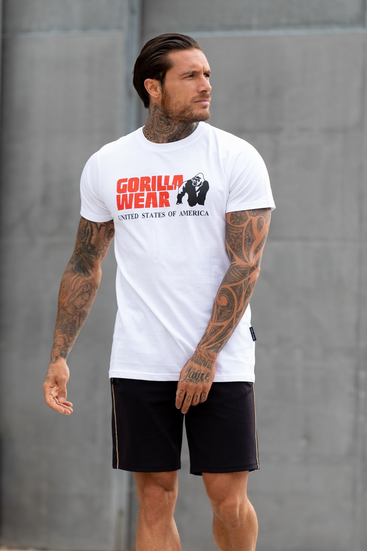 Känn dig bekväm på gymmet och till vardags med Classic T-shirt från Gorilla Wear – en tidlös t-shirt tillverkad i mjuk och slitstark bomull för en bekväm känsla hela dagen. Den har en klassisk passform och ett stort ikoniskt Gorilla Wear-tryck på bröstet.