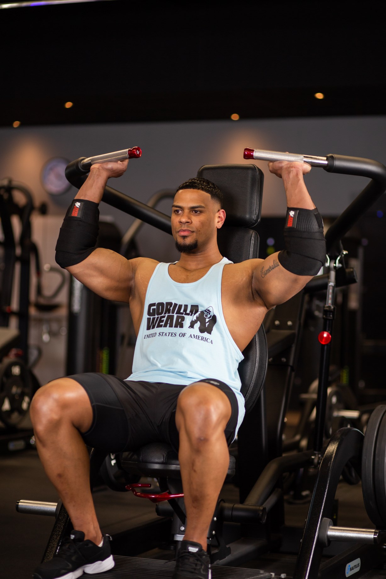 Stötta och skydda dina armbågar under pressövningar med Gorilla Wear Elbow Wraps! Dessa armbågslindor passar alla, oavsett om du är erfaren tyngdlyftare eller om du precis börjat. De passar för flera olika övningar, som bänkpress och andra pressövningar. De är designade för att lindas tätt runt dina armbågar, för att bidra med extra stöd och stabilitet och minska risken för skador. Lindorna har justerbara kardborreband som du enkelt fäster när du lindar dem. De säljs i par och finns i olika längder, för att passa alla.