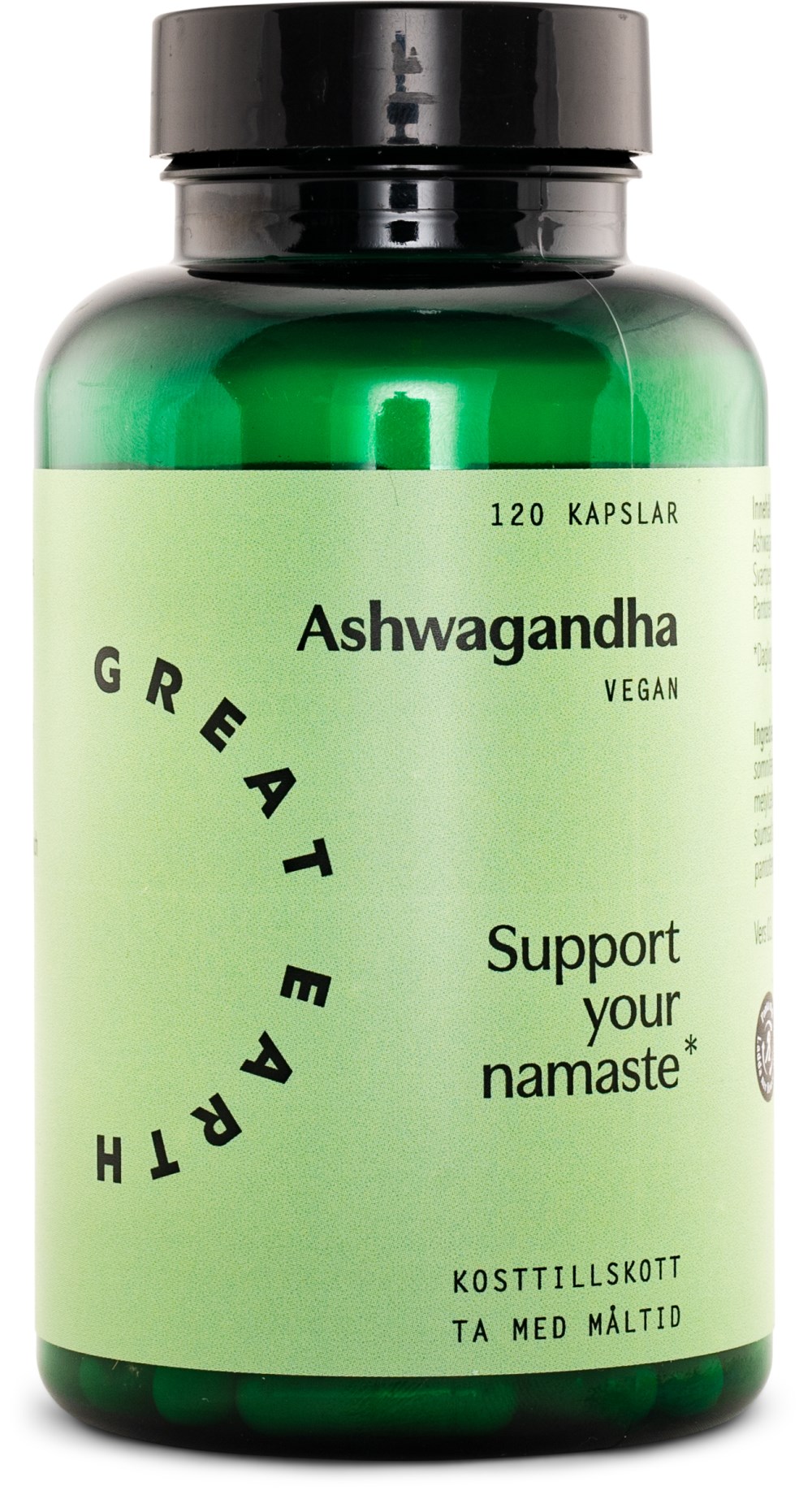 Great Earth Ashwagandha är ett högdoserat tillskott från ashwagandhaextrakt. Den populära örten som används flitigt inom traditionell Ayurveda och kallas även för indisk ginseng. Örten sägs kunna bibehålla ett mentalt och fysiskt välbefinnande under stressiga perioder i livet. Great Earth Ashwagandha är ett helt veganskt kosttillskott i kapselform med tillsatt svartpepparextrakt och ger dig hela 600 mg ashwagandha per portion. Dessutom innehåller den pantotensyra som bidrar till normal energiomsättning.
